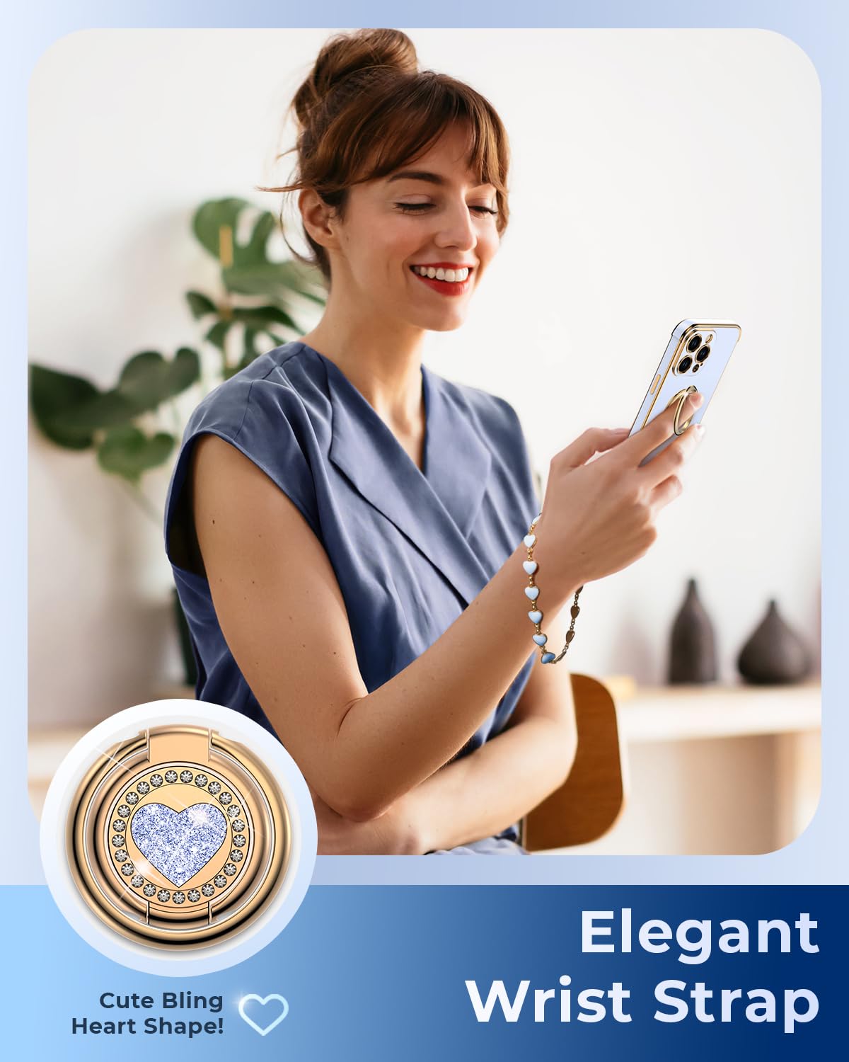 1. Ring Stand - This Ring Stand With A 360 Rotatable Double Ring, Acting As A Finger Grip And Sturdy Stand! 2. Slim Fit & Portable - Perfect For The On-The-Go Individual, This Slim Fit, Portable Phone Case With Wrist Strap, Blending Style, Function And Convenience. Keep Your Hands Free While Shopping, Cycling, Or Taking Photos With Our Attached Chain.
