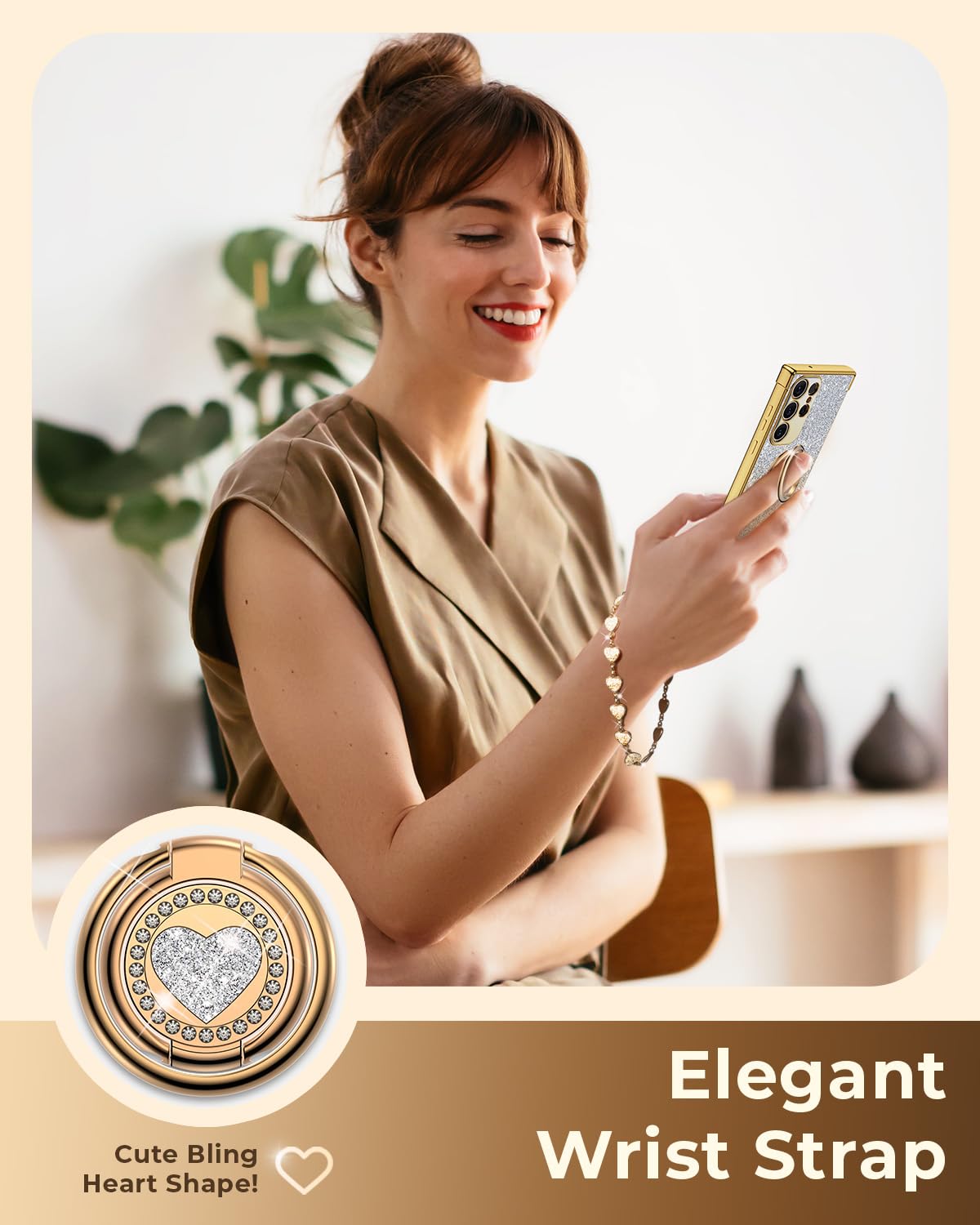 1. Ring Stand - This Ring Stand With A 360 Rotatable Double Ring, Acting As A Finger Grip And Sturose Goldy Stand! 2. Slim Fit & Portable - Perfect For The On-The-Go Individual, This Slim Fit, Portable Phone Case With Wrist Strap, Blending Style, Function And Convenience. Keep Your Hands Free While Shopping, Cycling, Or Taking Photos With Our Attached Chain.