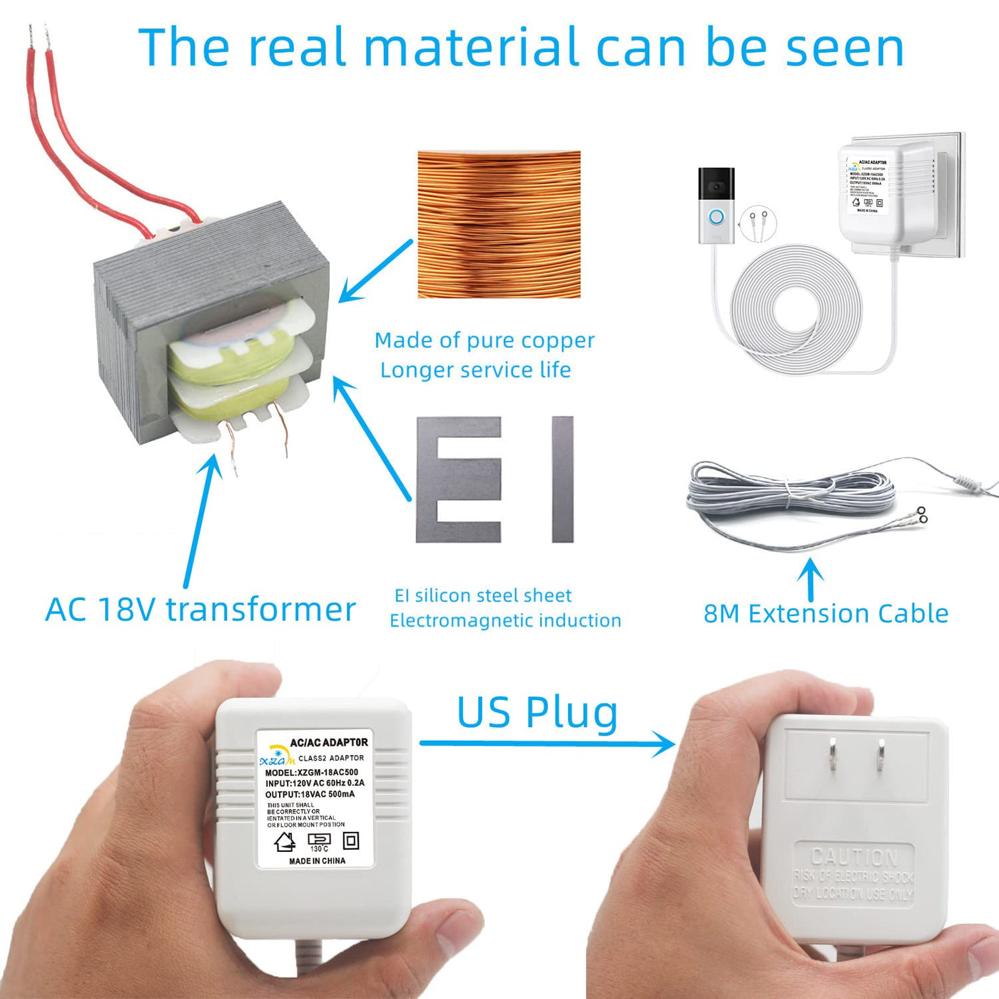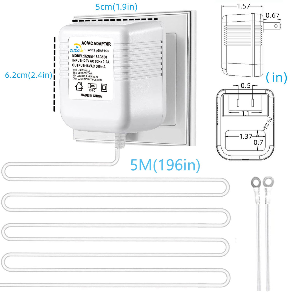 Xzgm18V500Ma Doorbell Power Adapter, Video Doorbell Special Power Transformer, Compatible With Ring, Nest, Eufy, Wyze, Arlo Wire