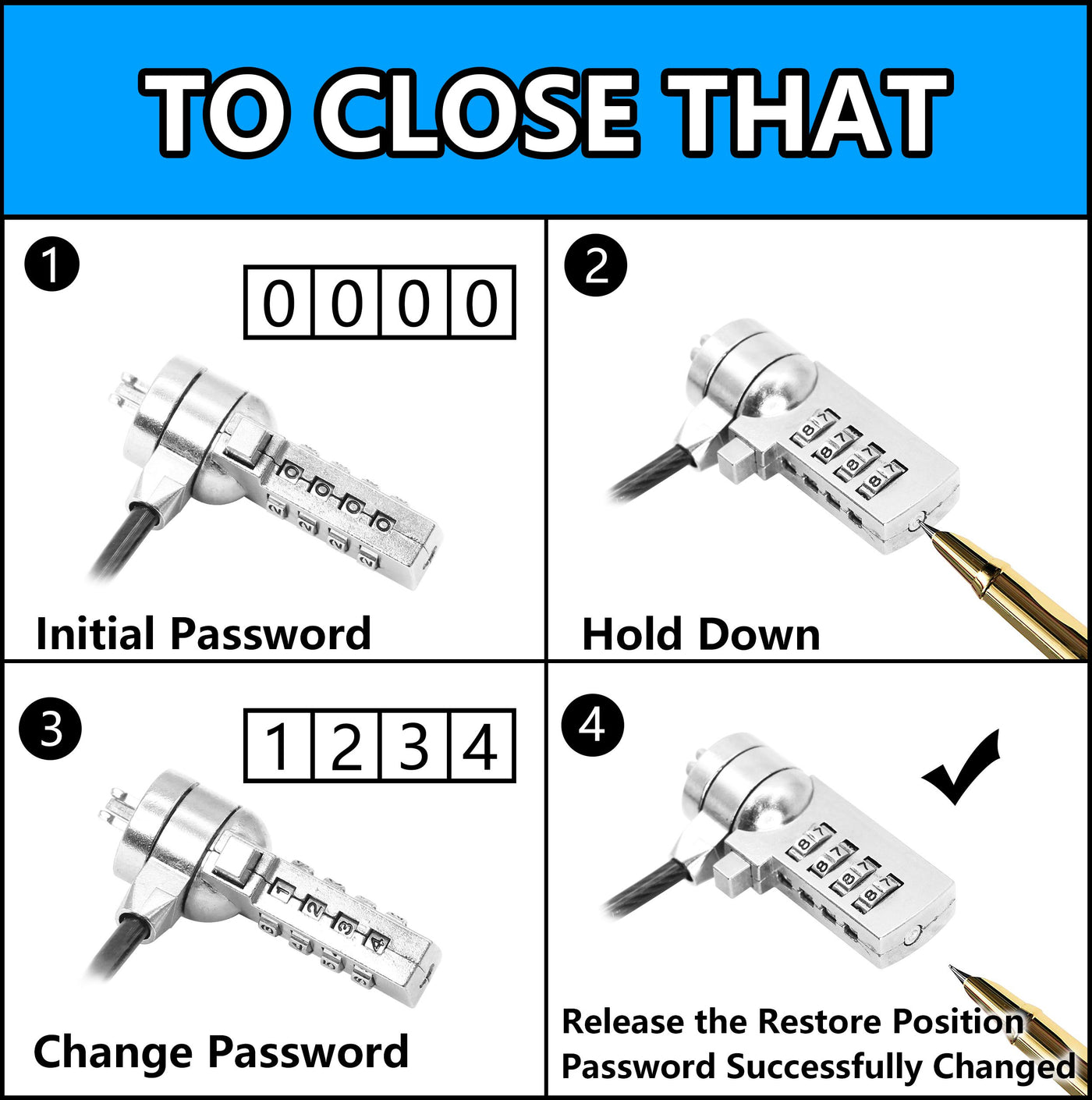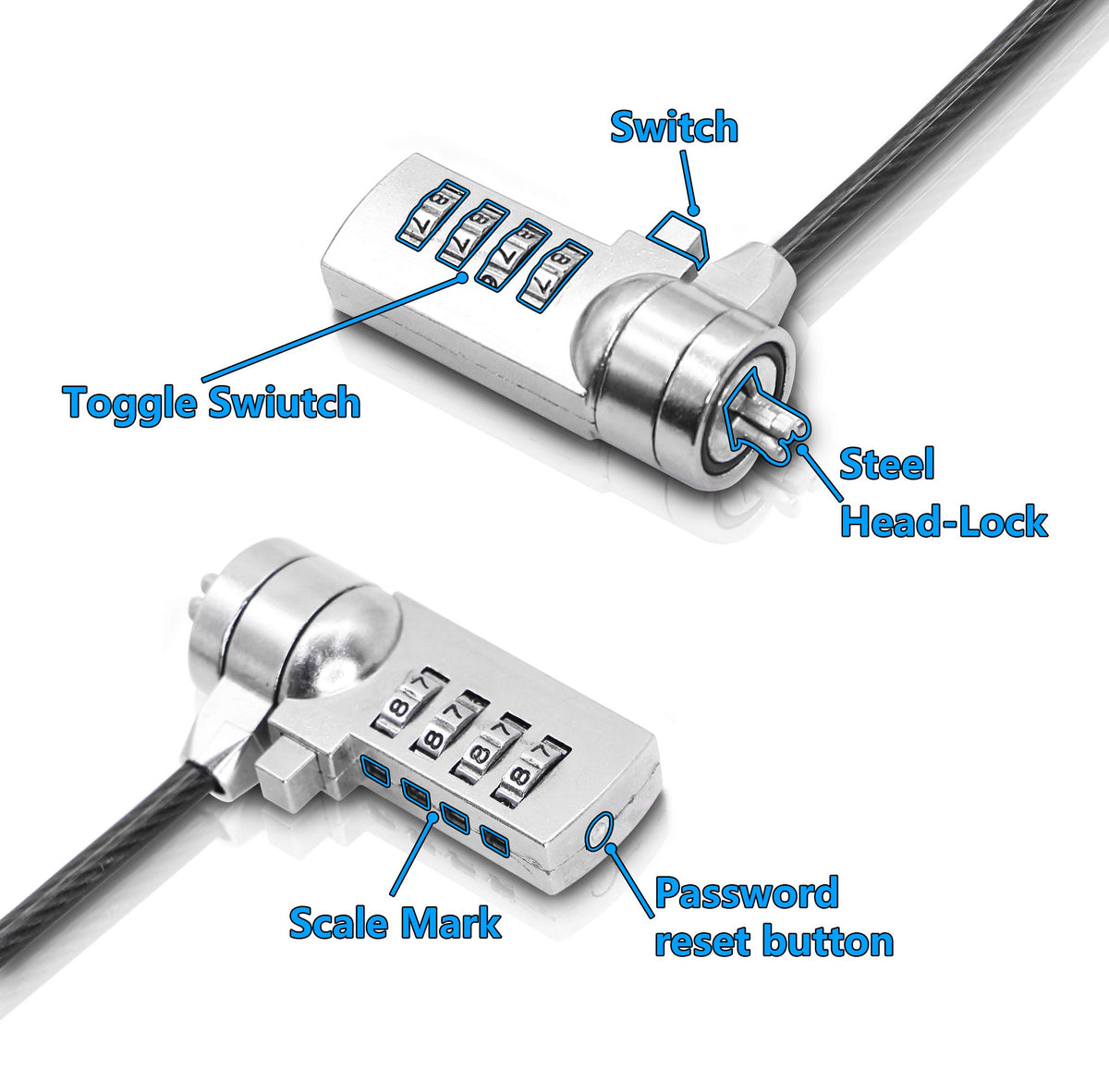 Note: Please Check Whether Your Device Has A 3*7Mm Safety Keyhole Before Purchase. If Your Device Does Not Have A 5*7Mm Safety Keyhole, The Lock Cannot Be Used. How To Use 1. Make The Steel Rope Fixed On The Fixed Content, Lock Body Wear Out From The Noose When Using. 2. Keep The Original Password As 0000. 3. Pull Open The Lock Ring, Insert The Lock To The Computer Lock Hole And Push The Locking Ring. 4. Make The Electric Cable Through The Keyhole,And Then Connect To The Object. 5. Strum Password And Your Computer Is Safely Locked.