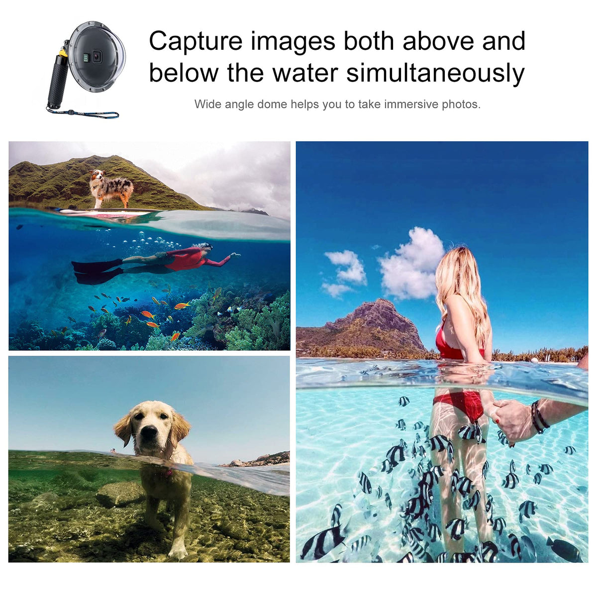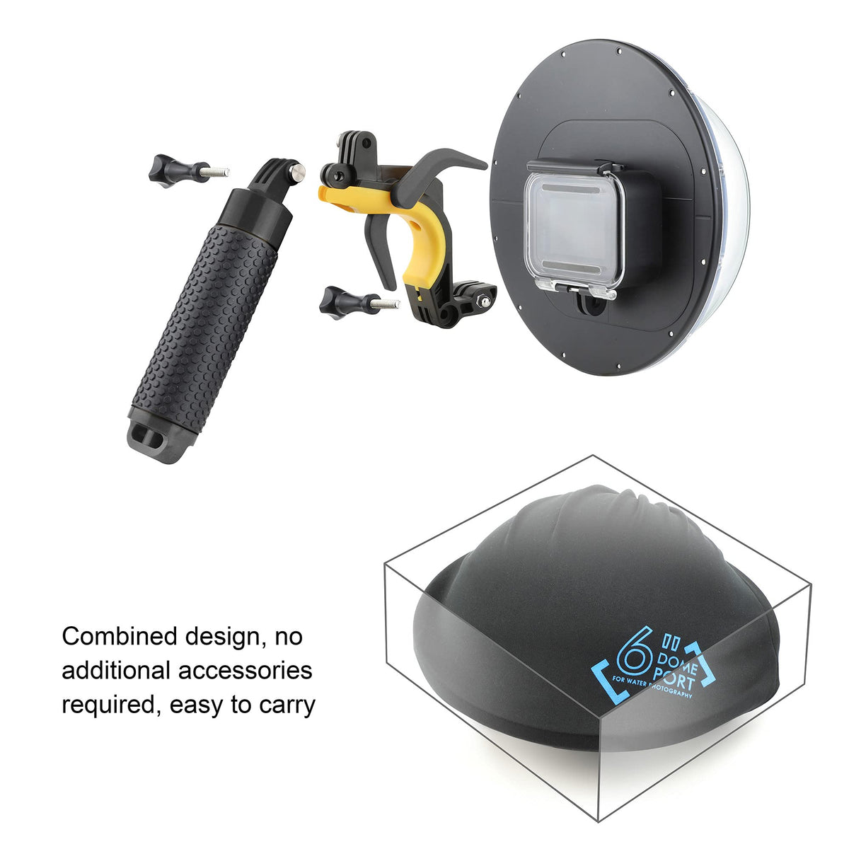 Compatibility: This Waterproof Dome Port Floating Grip Accessories Kit Is Compatible With Gopro Hero8 Black Action Camera Perfectly. Mind Usage: By Equipping With This Handgrip Dome Port Housing, Your Gopro8 Camera Can Possibly Capture Images Both Above And Below The Water Simultaneously. This Accessories Kit Is Ideal For Snorkeling, Diving, Surfing, Kayaking, Wakeboarding, Swimming Pool Party, And Other Water Sports. Dome Port Housing: The 6 In Diameter Dome Port And The Fully Sealed Housing Case Work At Depths Up To 147 Ft (45M) Underwater, Ensures Your Shooting Process Is Not Restricted. Besides, There Is A Reserved Window For The Front Lcd View To Check Camera While Using The Go Pro 8 Black Action Camera. Buoyancy Stick: The Handgrip Keeps Your Gopro8 From Afloat To Immersion For Taking Different Angles Images By Filling Different Volumes Of Water Into The Handle. With Non-Slip Embossed On Surface For A Comfortable And Secure Grip. The Cover Of The Bottom Can Be Opened To Store Stuff. Except For These, The Standard 1/4 In Socket At The Bottom For Mounting Tripod Or Other Accessories. You Can Use It With Dome Port Or Separately As You Need. Shutter Trigger: The Trigger Provides Extra Convenience For Pressing Shutter. Also, It Can Be Mounted With 2 Additional Devices At The Same Time Like Smartphone, Led Light, Camera, Etc. 1X Dome Port 1X Storage Bag 1X Lanyard 1X Trigger 1X Buoyancy Stick 2X Long Screw 1X Hex Key Spanner 1X Spanner Tool 1X Dry Inserts (6-Pcs) Storage Bag Also For Wiping Port Lens Wrist Strap Lanyard Included For Extra Security Full Accessories Included,No Additional Accessories Required.