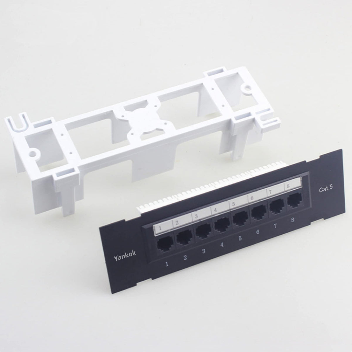 What'S In The Package? 1X 8 Port Cat5/5E Patch Panel 1X Mounting Bracket 1X Mini Punch Down Tool Specifications: Port: 8 Ports Cat.5/5E Height: 1U=44.5Mm / 1.75In. Length: 8 Inch=205Mm / 8.07In. 110 Style Punch Down 568-A/B Wiring Code Ul Listed Meets Or Exceeds Tia/Eia 568-A And 568-B Standard Features: Patch Panels Come Pre-Configured 110-Style Punch Downs On The Rear Side And 8-Port Rj-45 Front Modules. 8 Port Cat5/5E Patch Panels From Yankok Will Maximize Your Network Performance And Keep Up With Even The Greatest Changes Of Speed In Your Network. Made From Black Electrostatic Powder-Coated Steel These Patch Panels Can Stand Up To Even The Most Extreme Conditions. With The Built-In Cable Management And A Clear Wiring Guide On The Reverse Side Of The Patch Panel Will Make Sure You Never Second Guess If Punch Down The Patch Panel Correctly. Yankok Cat5/5E Patch Panels Are Rated Up To 250Mbps And Meet Or Exceed The Tia/Eia 568-B.2 Industry Specifications. All Yankok Patch Panels Are Ul Listed, Feature A 110 Type Punch Down Termination. About Yankok: Yankok Offers A Comprehensive Line Of Vdv Products Created To Prep, Connect, And Test Network, Phone, Catv, Home Theater, Satellite, And Security Cables For Residential Or Commercial Systems. Yankok Has Manufactured Premium-Quality, Professional-Grade Hand Tools That Deliver The Performance, Durability And Precision Needed To Get The Job Done Right. We Only Use The High-Quality Materials, Superior Workmanship, And Keeping Manufacturing As Close To Home As We Can And Make Great Products That Stand Up To The Demands Of The Professionals Who Use Them Every Day.