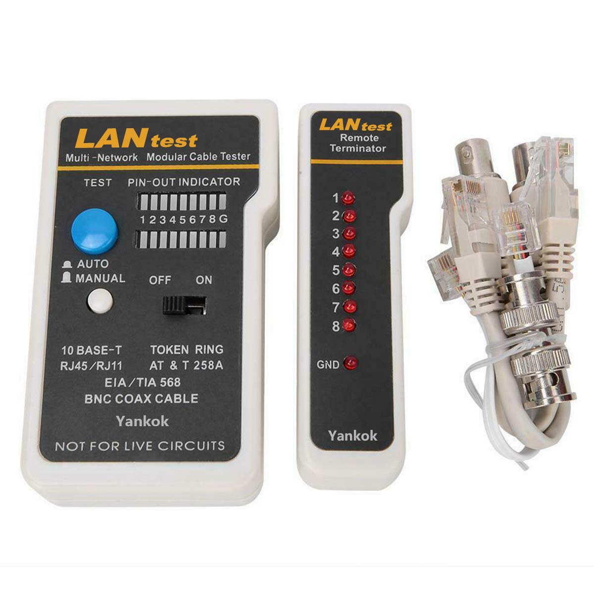 Yankok [Lantest Multi Network Modular Cable Tester Kit] For 10Base T (Cat5/5E Cat6), 10Base 2 (Coaxial), Rj45 Rj11 Modular Cable