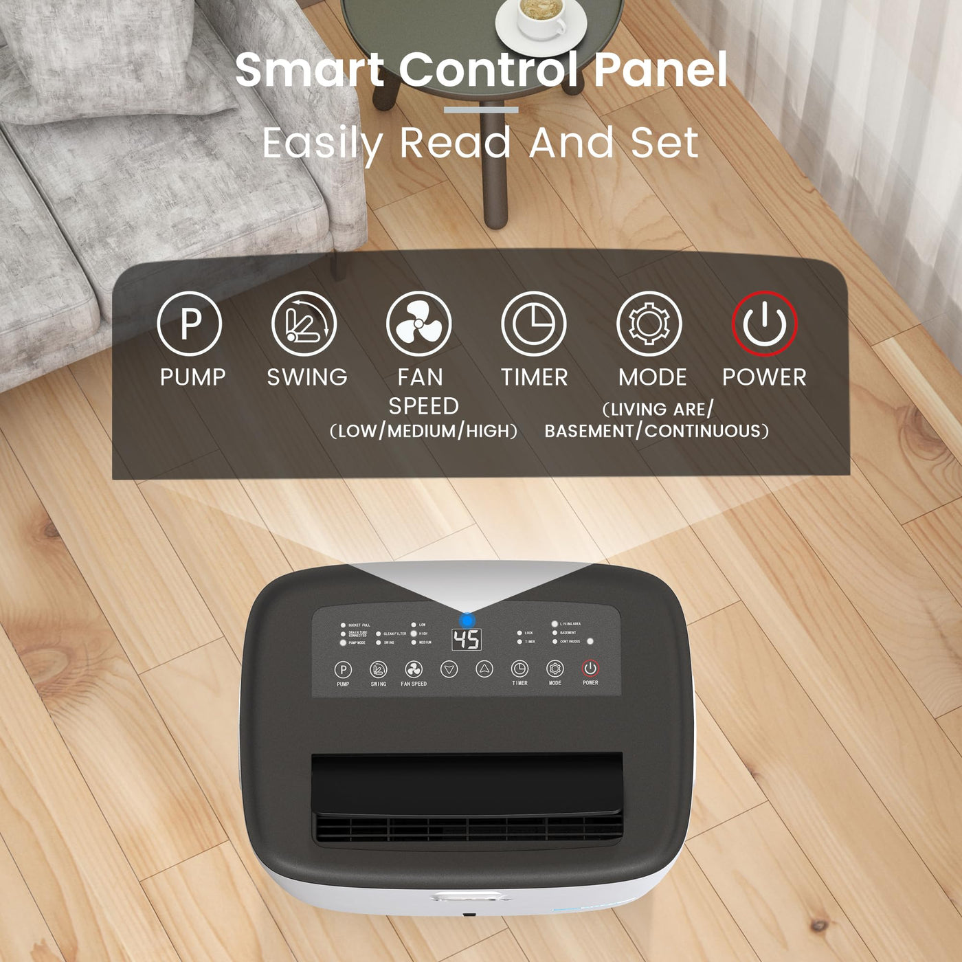 Yaufey 150 Pints Energy Star Dehumidifier With Pump For Home, Basement And Large Room Up To 7000 Sq. Ft., With Drain Hose, Timer