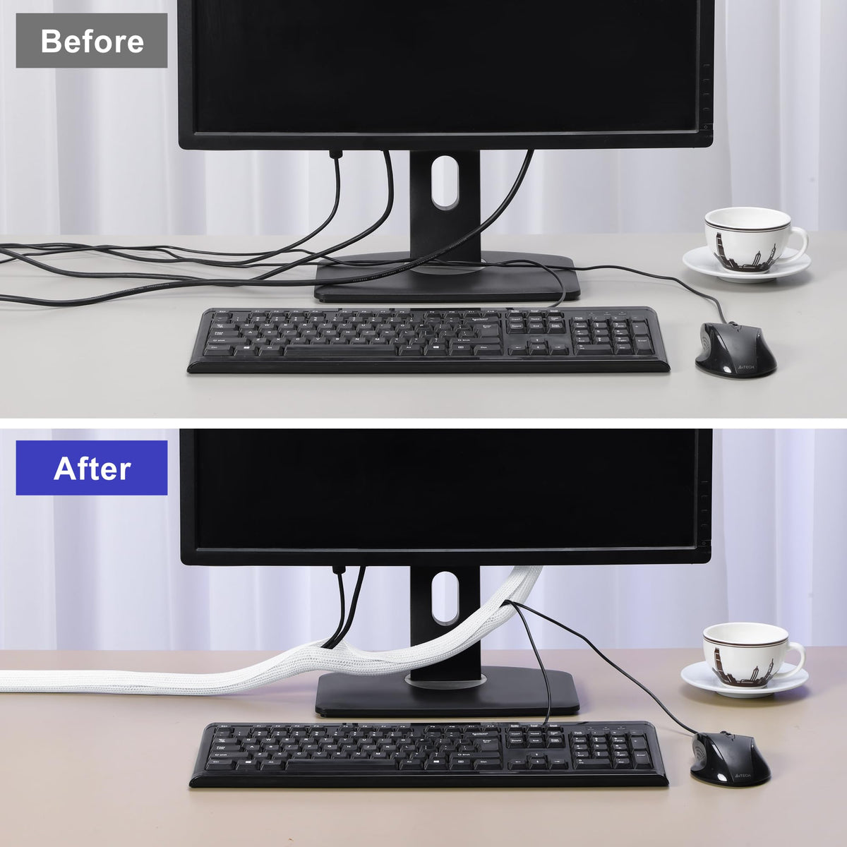 Q: How do I install the YCLYC Cable Management Sleeves?A: Installation is simple; just load your cables into the sleeve, and the split design will self-close, wrapping around your cords neatly. You can easily cut the sleeves to your desired length with scissors for a custom fit.