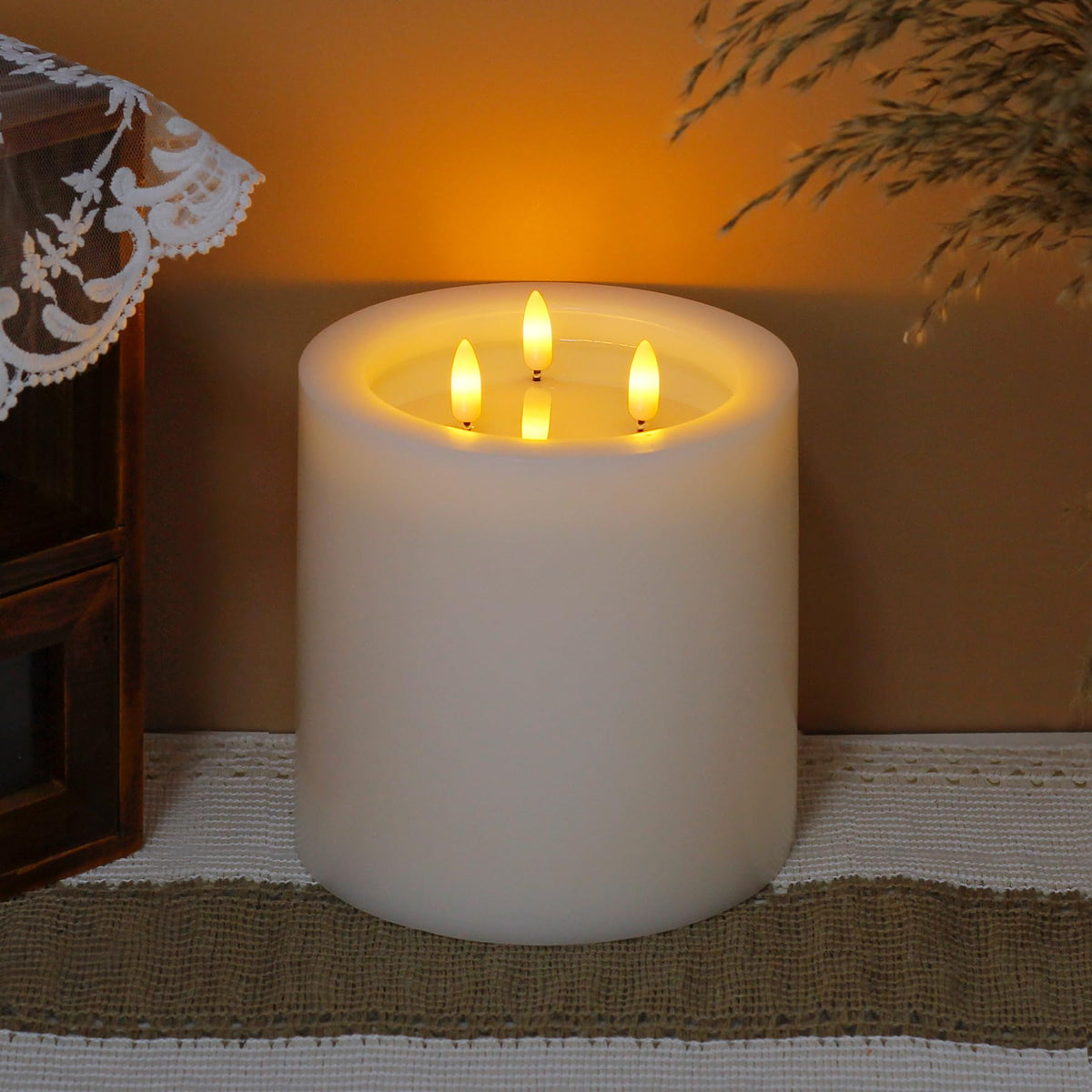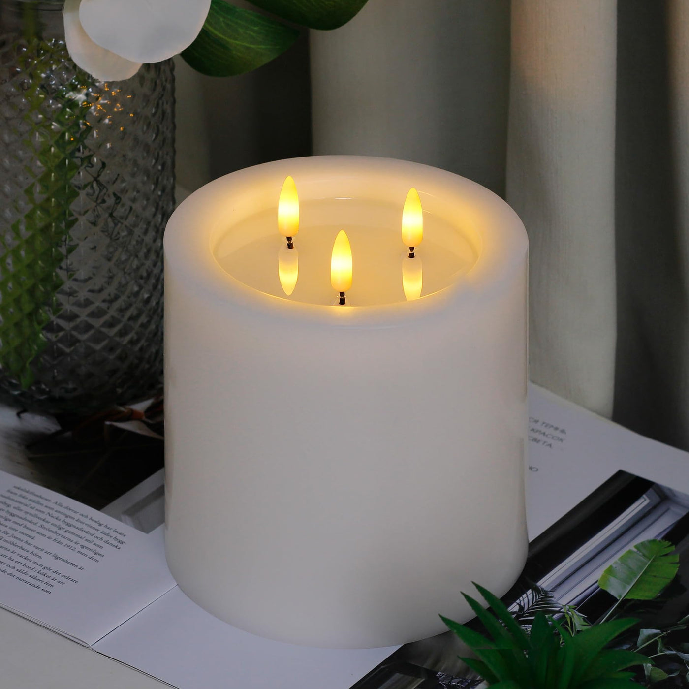 Yeelida 3 Wick 6 X6 Large Flameless Pillar Candles With Remote Control And Timer Function,White Battery Operated Led Flicke