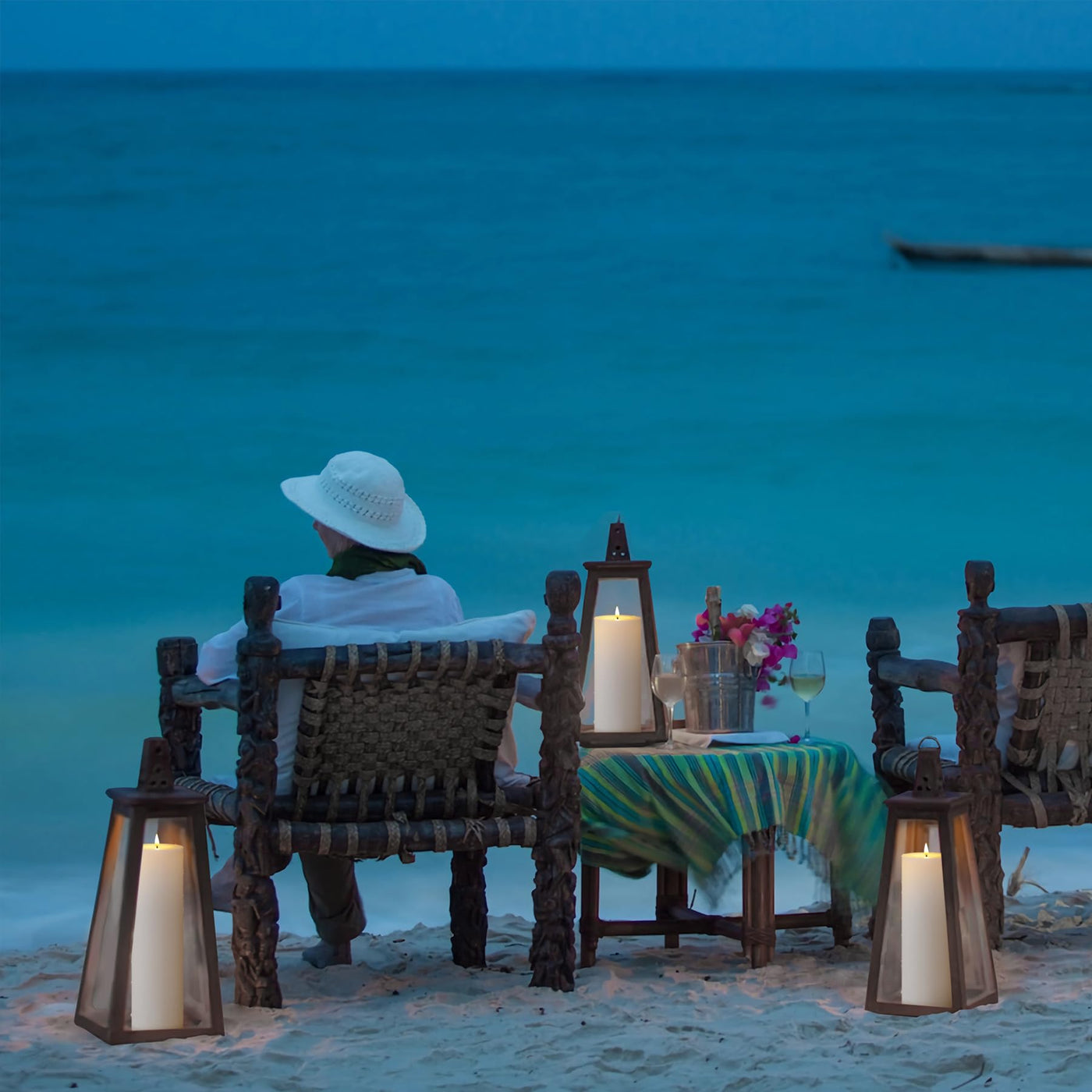 Q: What is the size of the Yeelida flameless candles and where can I use them?A: The Yeelida flameless candles measure 4 inches in diameter and 14 inches in height, making them ideal for outdoor settings such as balconies, gardens, and porches.