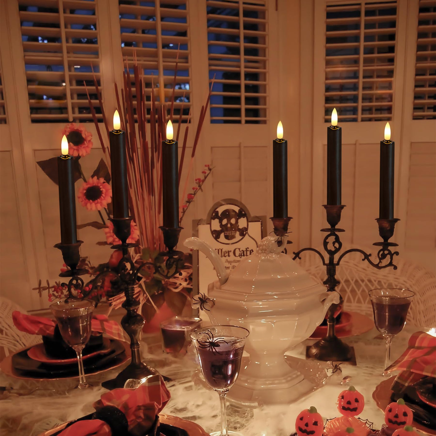 Yeelida Black Flameless Led Taper Candles With Remote Control, 0.78''X 6.4'' Long Lasting Plastic Battery Operated Flickering Sh
