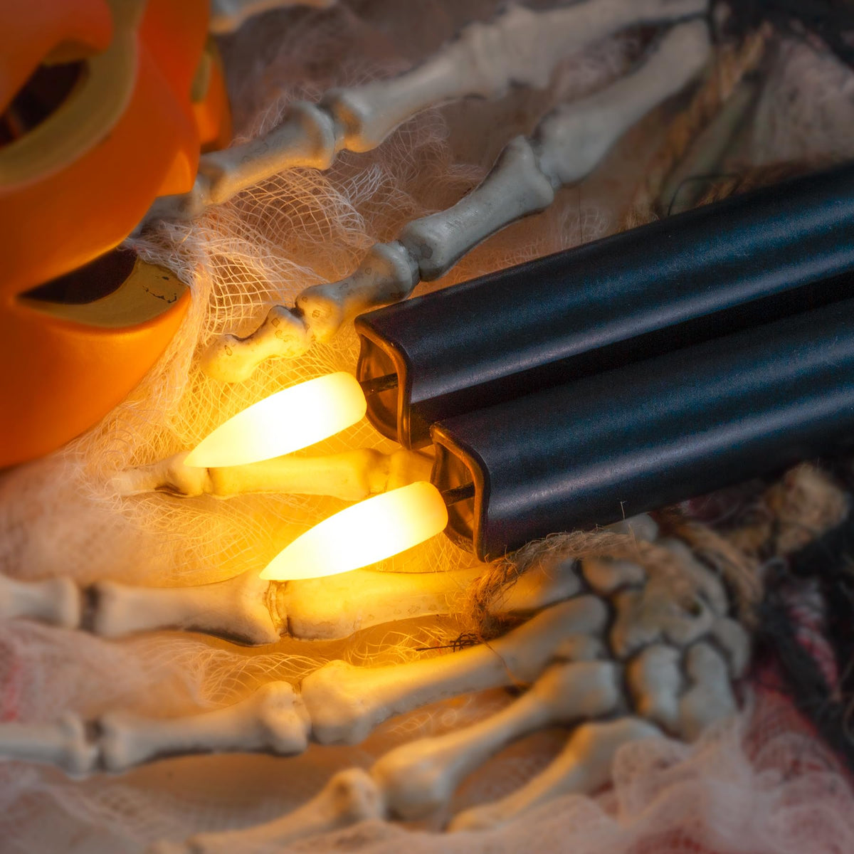 Yeelida Flameless Taper Candles Information: You Will Get: 6 Led Taper Candles, 2 Remote Controls, 1 Operation Manual Material: Thickened Plastic Shell Color: Black Battery Type: 2 Aaa (Not Included) Size: 0.78 Inches X 6.4 Inches Characteristics: No Flame, No Smoke, No Scent, Flickering, Handy Remote, Cycle Timer, Dim -/+, Realistic