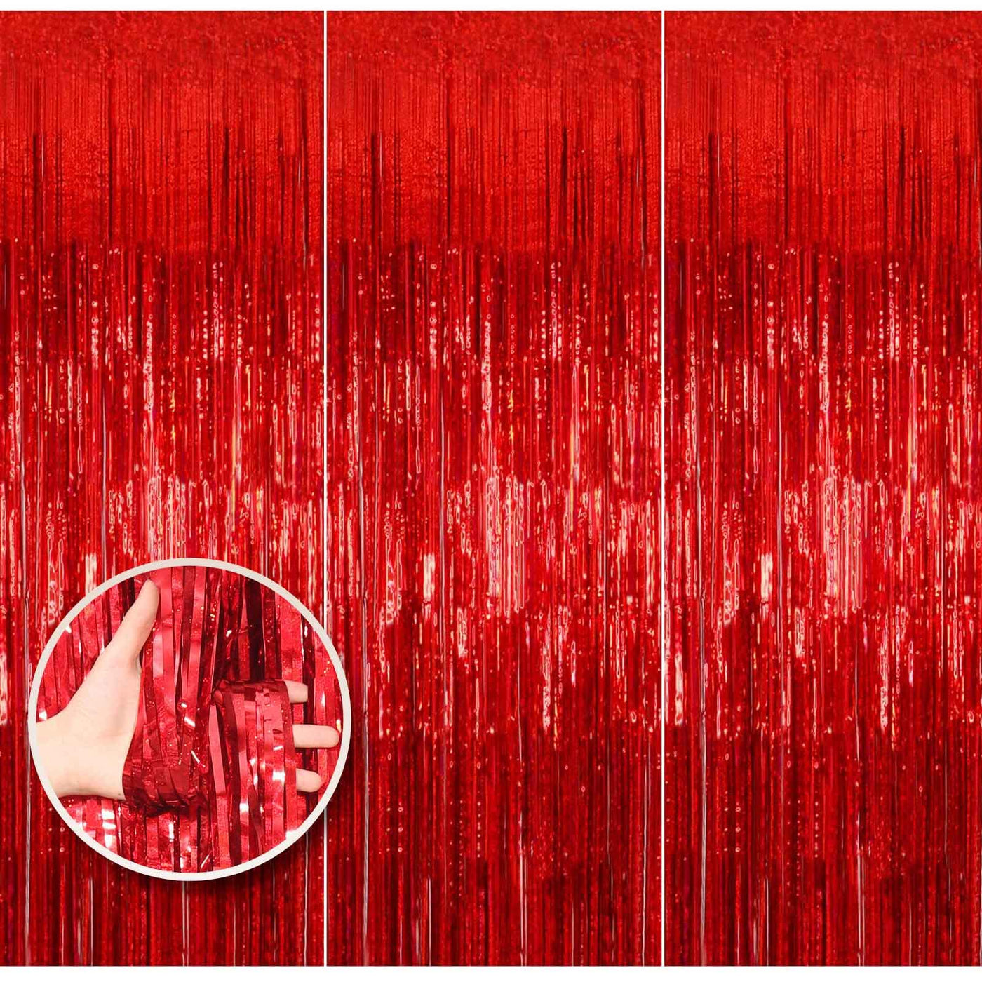 Yeson Red Foil Fringe Curtains Metallic Tinsel Shimmer Curtain Party Backdrop Decorations,Pack Of 4