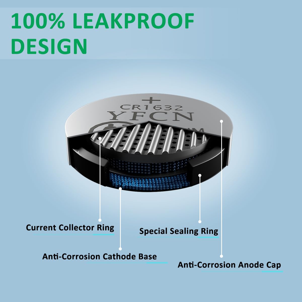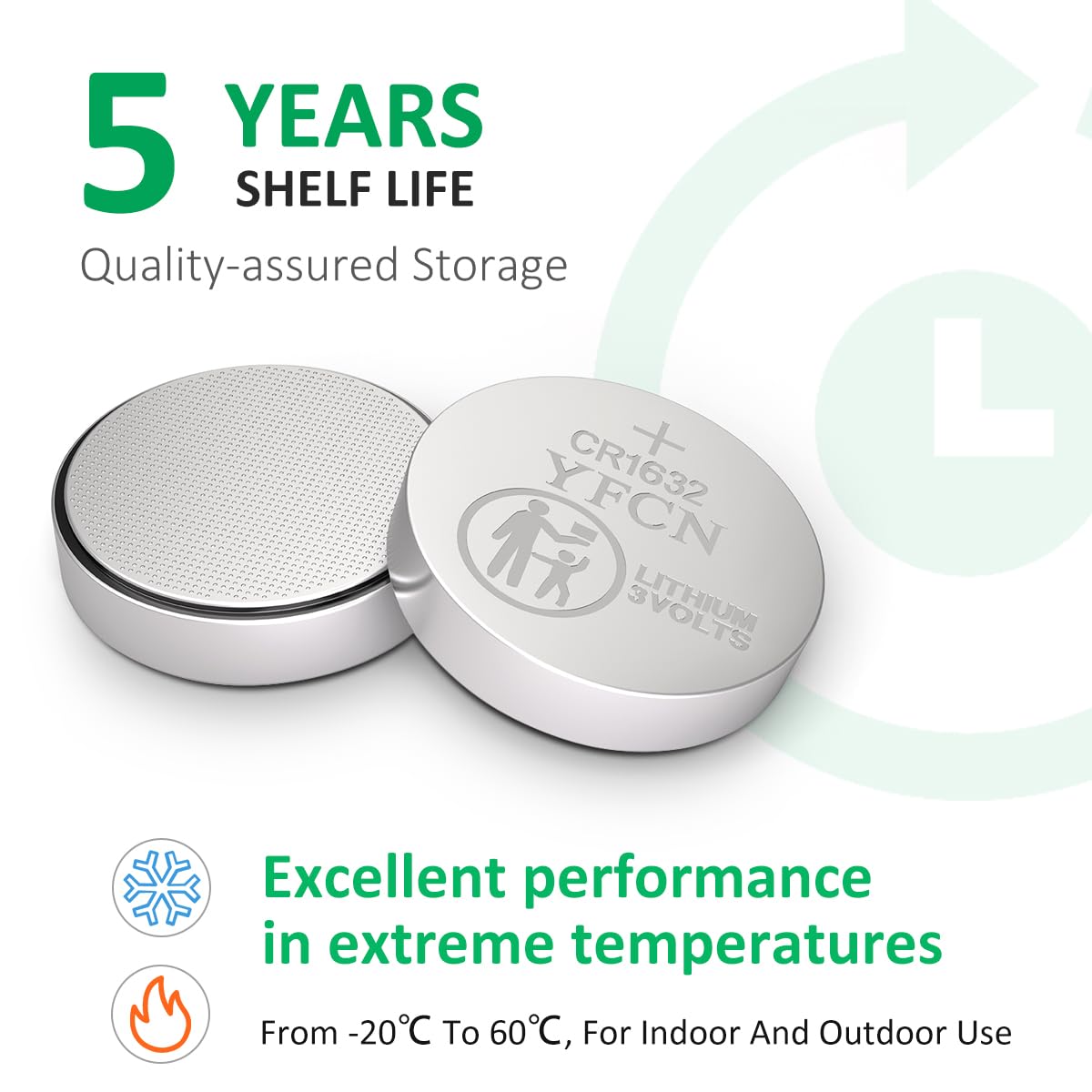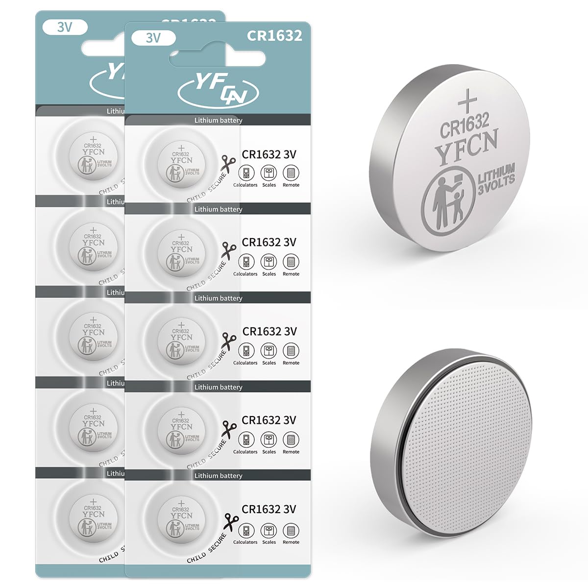 Yfcn Cr1632 Battery 3V Lithium Battery 10 Count Pack Cr1632 Batteries For Car Key Fob, Keyless Remote, Sensors - Cr 1632 Coin Cell Batteries - 5 Years Shelf Life
