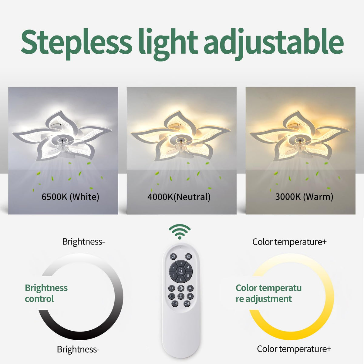 Yfrest Ceiling Fan With Lights Remote Control, White Personalized Ceiling Fan With Light, 6 Speeds 3 Light Color Flush Mount Cei