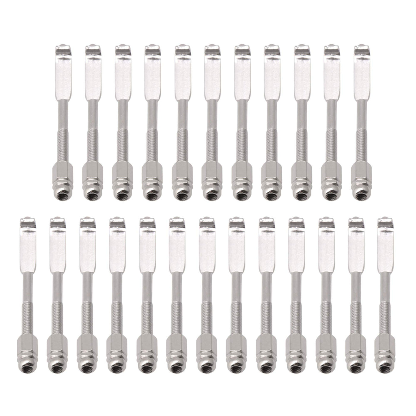 Specification: Brand Name:Yibuy Material:Stainless Steel Color:Silver Size: Length: 54Mm Width: 6Mm Thread Length: 20Mm Weight:45G Features: 1.Scope Of Use: Suitable For Replacement Parts Of Musical Instruments Such As Turtledoves. 2.The Banjo Hook Is Very Convenient, Easy To Install And Use. These Banjo Stand Hooks Fit Most Vintage And Modern Banjos. 3.Accurate Processing, These Banjo Hooks Are Suitable For 24 Hook Banjo Replacement, Easy And Quick To Adjust. 4.You Can Diy To Replace The Accessories, Install And Use, Very Convenient. 5.These Use A Standard Nut So Adjustments Are Easy And Fast,High Quality Beautiful Appearance, And Can Be Used For A Long Time.6.Great Replacment Accessory For The Use,High Quality Beautiful Appearance, And Can Be Used For A Long Time. Package Includes: 24 X Traditional Banjo Flat Hooks