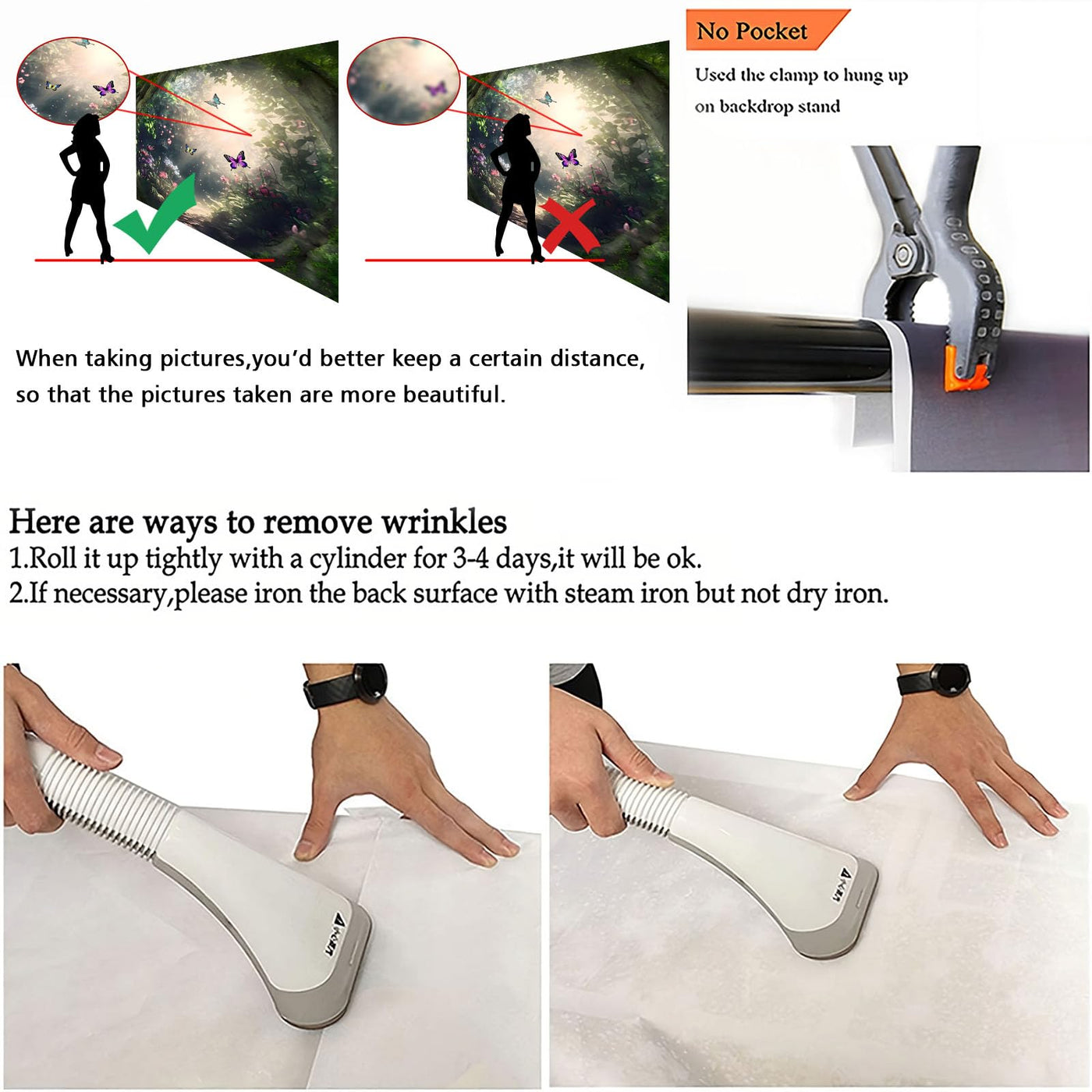 Q: How should I store the backdrop when not in use?A: To ensure the longevity of your backdrop, store it in a cool space away from direct sunlight. It's best to fold it neatly to avoid creases, and you can iron it at a low temperature if needed.