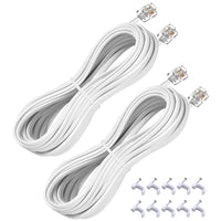 Yienfbev 15Ft Telephone Extension Cord Cable, Landline Phone Line Wire With Rj11 6P4C Plugs, Includes Cable Clips White 2 Pa