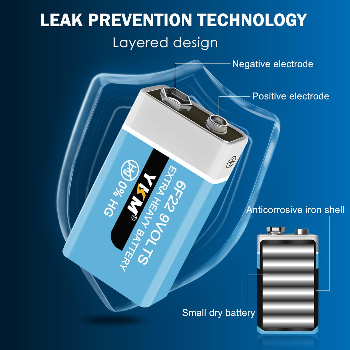 Ykm 9 Volt Batteries Tested Under Strict Quality To Ensure Long Lasting Power, For All Your Household Appliances And Meet Daily Needs;7 Year Shelf Life,With Over 85% Battery Capacity After 7 Years Of Storage,Better Than Regular Batteries,You Dont Need To Change The Battery Frequently;Ykm 9V Batteries Suit For Digital Cameras, Remote Game Controllers, Wireless Keyboards And Mice, Smoke Alarm, Radio, Shaver,Electronic Guitar, Smoke Detector,Microphone And More;100% Leakproof ,9 Volt Batteries Are Designed With Layered Design Internal Structure ,With Stainless Steel Cover So That They Are 100% Leakproof;9V Smoke Detector Battery For Smoke Detector Do Not Contain Mercury Or Cadmium.
