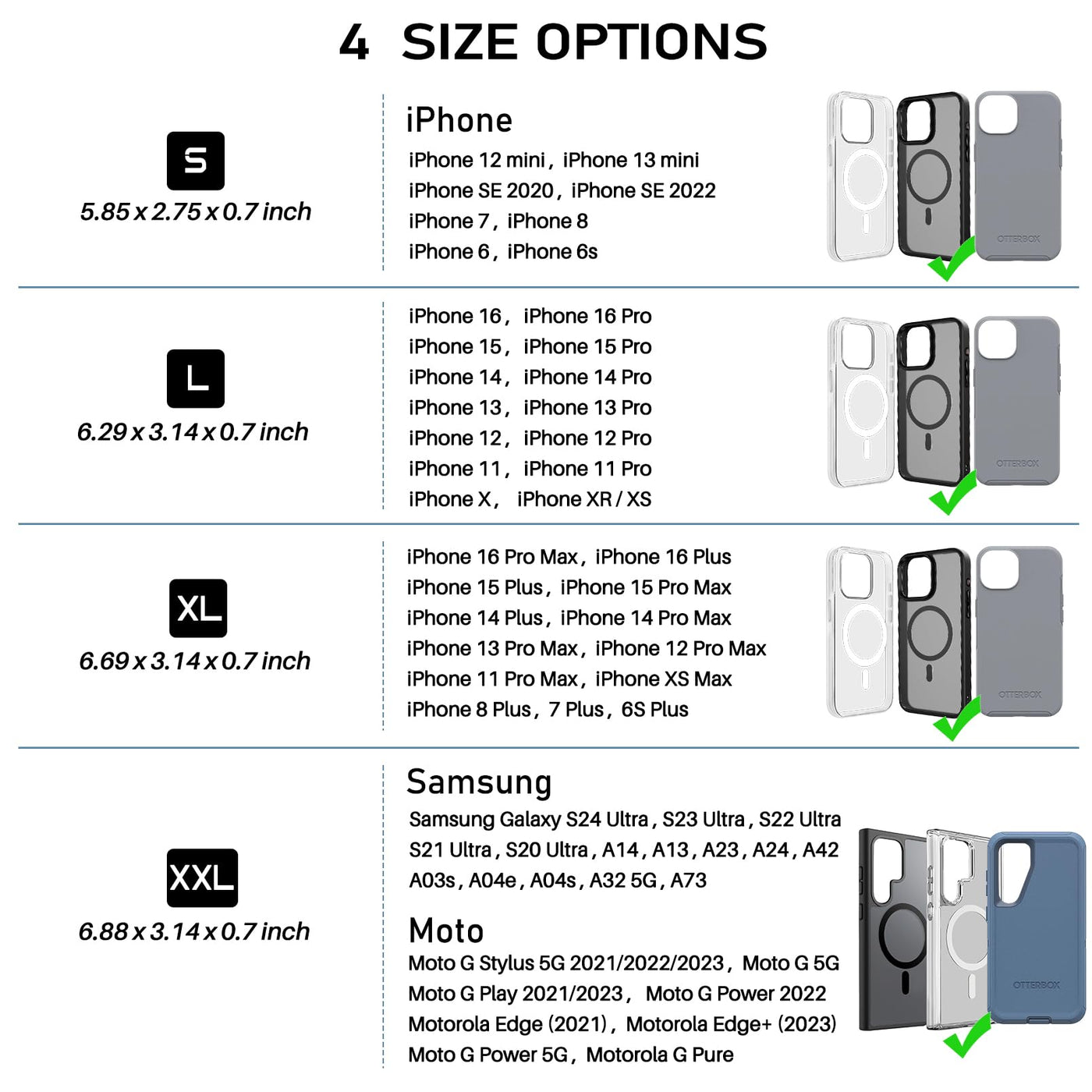 Ykooe Phone Holsters Can Be A Useful And Practical Accessory For Anyone Who Needs To Keep Their Phone Close And Accessible While On The Move. Made With Durable Nylon Material And A Soft Inner Lining, This Belt Phone Holder Men Provides Excellent Protection For Your Phone. This Cell Phone Pouch Comes With A Belt Clip And Two Belt Loops, Allowing You To Wear It On Your Belt For Easy Access. For Maximum Security, We Recommend Using Both The Clip And The Loops. The Magnetic Closure Ensures That Your Phone Stays Securely In Place While Allowing For Easy Access. In Addition To Holding Your Phone, This Cell Phone Holster With Belt Loop Also Has A Built-In Money Pocket And One Card Holder That Can Hold Up To Two Bills And Two Cards. This Feature Is Perfect For Those Times When You Only Need To Carry A Few Essential Items With You. We Have Four Size Options Available: S - 5.85 X 2.75 X 0.7 Inches, L - 6.29 X 3.14 X 0.7 Inches, Xl - 6.69 X 3.14 X 0.7 Inches And Xxl - 6.88X 3.14X0.7 Inches. Select The Size That Suits Your Phone Perfectly For An Ideal Fit. Size Xl -Fit Phone With Otterbox Commuter/ Symmetry Case On: Iphone 16 Plus, Iphone 16 Pro Max, Iphone 15 Plus, Iphone 15 Pro Max, Iphone 14 Plus, Iphone 14 Pro Max, Iphone 13 Pro Max, Iphone 12 Pro Max, Iphone 11 Pro Max, Iphone Xs Max, Iphone 7 Plus, Iphone 8 Plus; Samsung Galaxy S24 Plus, Galaxy S23 Plus, Galaxy S22 Plus, Galaxy S21 Plus, Galaxy S24 Fe, Galaxy S23 Fe, Galaxy S21 Fe, Galaxy S20 Fe, Galaxy S9 Plus, S8 Plus