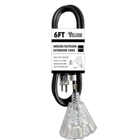 Yojoe 6 Foot 10/3 Lighted Outdoor Extension Cord With 3 Power Outlets 10 Gauge 3 Prong Sjtw Heavy Duty Black Extension Cable W