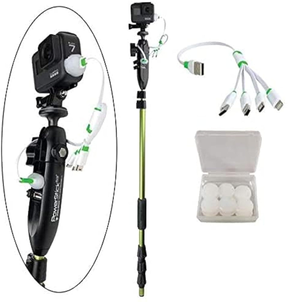 The Bundle Includes:1- Powerstick-53'' Gen31 - Silicone Rainproof Putty1 - Quadcord-12'' (4-In-1 Usb Cord)&Nbsp;Catch Great Video Of Your Personal Best Or Other Adventures On The Water Without Ever Having To Worry About Your Action Camera Battery Dying. We Say #Alwaysberecording And Powerstick-53'' Super-Bundle Has All The Accessories To Make It Easy To Capture Once-In-A-Lifetime Moments On The Water. The Mount Known As ''The Cameraman'' Also Pulls Power Off Your Cranking Battery, Converts That To Usb And Powers Your Action Camera, Phone Or Other Electronics. Locking Collars Keep Everything Safe Up To 70Mph And Our Just-In-Case Tether System Doubles Down On Safety.&Nbsp;Powerstick-53'' Gen3 Is An All New Design And What The Pros Use To Mount &Amp; Provide Constant Power To Their Gopro, Virb, Other Action Camera Or Your Phone Too. The Only Powered Gopro Boat Mount.&Nbsp; If Youre Tired Of Dead Gopro Batteries, Powerstick-53 Is Here To Save The Day! Plugs Right Into Your Rear Navlight (Anchor/White Light) Port Or Your Front Bow Light (Red/Green) Port On Your Boat And Requires No Tools To Set-Up! It Converts 12Volt From The Navlight Port To 5Volt Usb, So You Can Record On Gopro All-Day Long! It Also Makes Very Little Impact On Your Cranking Battery, So No Fear Of That Battery Dying Either. Secure Up To 70Mph, So You Can Capture Great Video Flying Down The Lake. It'S Like Having A ''Cameraman'' On Your Boat. Don'T Miss The Shot, Get Powerstick-53''!
