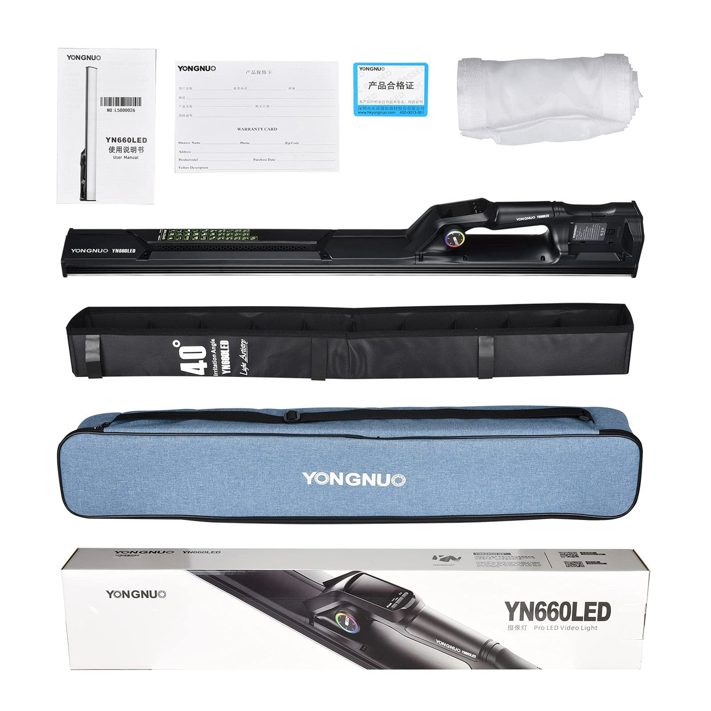Yongnuo Yn660Led Led Video Light, 45W Handheld Wand Light, Rgb Full Color Led Tube Light, Cri96 2000K 9900K Adjustable, 31 Light