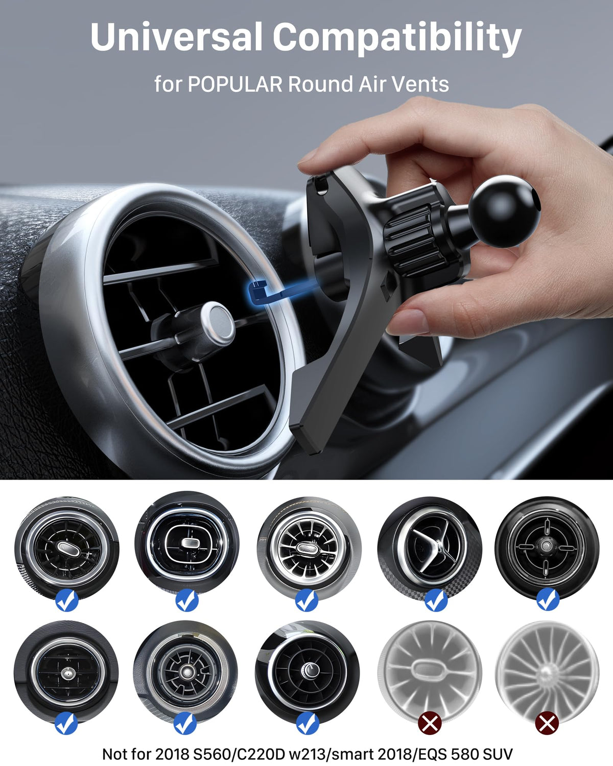 Yosh Car Vent Phone Mount Universal For Round Vent, Audi A1, Mini Cooper 2020-23&Countryman, Mercedes Benz Car Accessories Phone