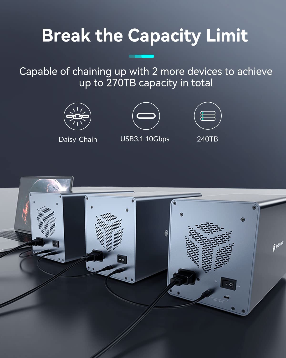 Yottamaster 10Gbps 5 Bay Usb C Hard Drive Enclosure Daisy Chain, 150W Aluminum 3.5'' Hdd Enclosure For 3.5 & 2.5 Inch Sata Hdd/S
