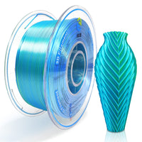 Q: What makes YOUSU Silk PLA filament different from regular PLA?A: YOUSU Silk PLA filament features a unique coextrusion process that combines two distinct colors in one filament, creating stunning dual-color prints. This filament also provides a shiny, smooth surface without the need for polishing, making it stand out from regular PLA.