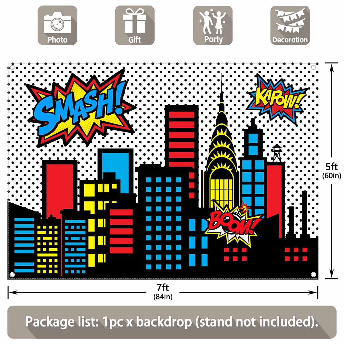 Yriujul 7X5Ft Superhero Cityscape Photography Backdrop Skyline Buildings City Boom Background Kids Birthday Banner Party Baby Sh