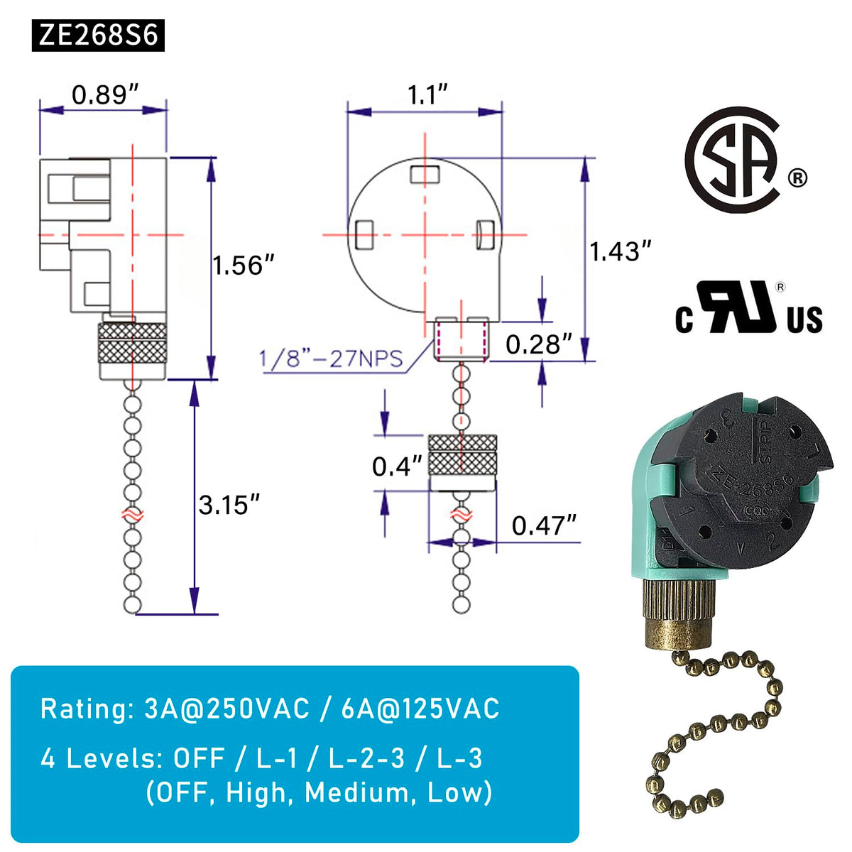 Q: What is the purpose of the YukiHalu Ceiling Fan Pull Chain Switch?A: The YukiHalu Ceiling Fan Pull Chain Switch allows you to control the speed of your ceiling fan with three settings: high, medium, and low, as well as an off position. It is designed to enhance the functionality of your ceiling fan by providing a simple and effective way to adjust its speed.