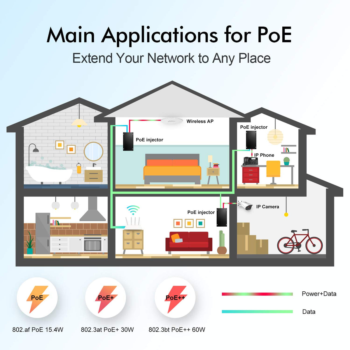Yulinca Gigabit Poe+ Injector 60W, 802.3Af/At/Bt Power Over Ethernet Poe Adapter, 10/100/1000Mbps, Non Poe To Poe Adapter, Plug & Play, Distance Up To 100 Meters (328 Ft.)
