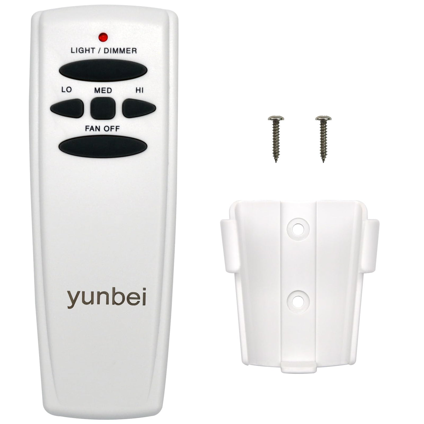 This Remote Is Designed To Separately Handle Your Ceiling Fan Light Brightness, Fan Speed The Light Dimmer Button Will Handle The Light Brightness Dimmer And Off. There Are Four Buttons (Hi, Med, Lo, Fan Off) To Handle The Speed Of The Fan And Off. The Red Indicator On The Transmitter Will Light When One Of The Six Buttons Is Pressed. Need To Know Before Buying This Package Does Not Include A Receiver Or 9V Battery. The Light Dimmer Is Compatible With Incandescent Light Bulbs, Led Bulbs Only Have The On/Off Function. If Your Fan Have Pull Chain Switch, Before Using The Wireless Remote, Use The Switch To Turn The Fan Speed To Maximum And Turn The Fan Light On. In This Way The Switch And The Wireless Remote Can Be Used Together. Trouble Shooting Guide 1. Fails To Operate A. Power To Receiver ? B. Receiver Wired Correctly ? C. Fan Manual Speed Handle In Highest Position? D. Light Kit Switch Turned On ? E. Good Battery In The Transmitter ? F. Code Set At Exact Same Positions In Both Transmitter And Receiver ? 2. Won'T Operate At Distance If Transmitter Operates Fan/Light Kit When Up Close, But Not At 20 Feet Away. Try Placing The Antenna Wire Higher, Up Through Ceiling/Outside The Junction Box. Package Included: Transmitter * 1 Wall Mount Holder * 1 Screws * 2 Manual * 1