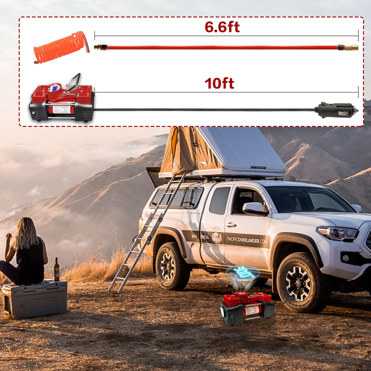 Yungtee Red Tire Inflator Heavy Duty Double Cylinders Direct Drive Inflation Pump,12V Portable Air Compressor Pump With Led Ligh