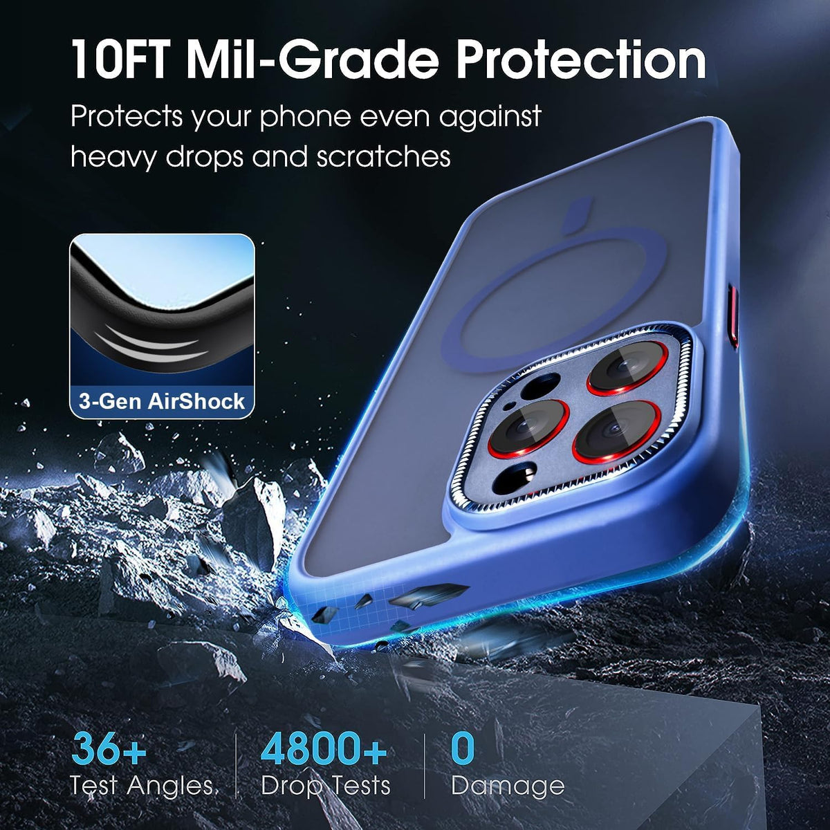 Q: What level of drop protection does this case provide?A: This case offers 10FT military-grade drop protection, effectively dispersing impact from drops and protecting your iPhone from all directions.