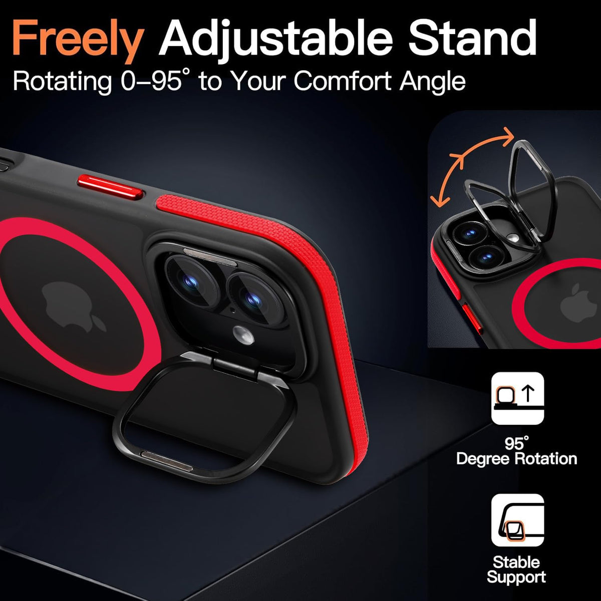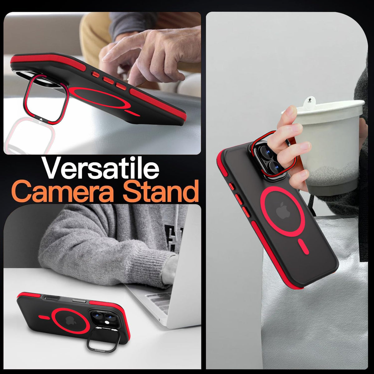 Yzoiko Magnetic Case For Iphone 16 [10Ft Military Grade Protection] Built In Camera Stand Phone Case, Compatible With Fit Magsaf