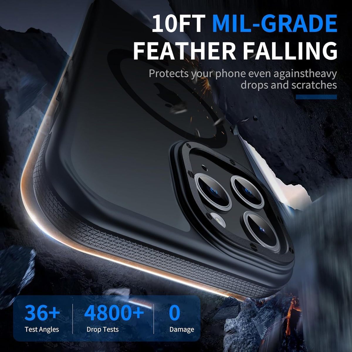 Q: What level of protection does this case provide for my iPhone 13 Pro Max?A: This case offers 10FT military-grade drop protection, featuring impact dispersion technology and a specially designed shockproof structure to safeguard your device from falls and impacts.