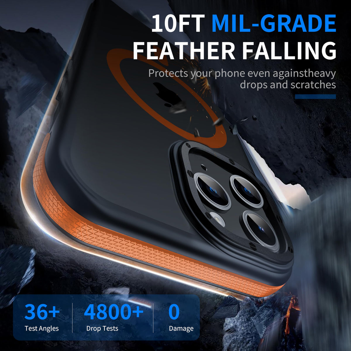 Q: What level of drop protection does this case offer?A: This case provides 10FT military-grade drop protection, featuring impact dispersion technology at all four corners to safeguard your device from high falls and impacts.