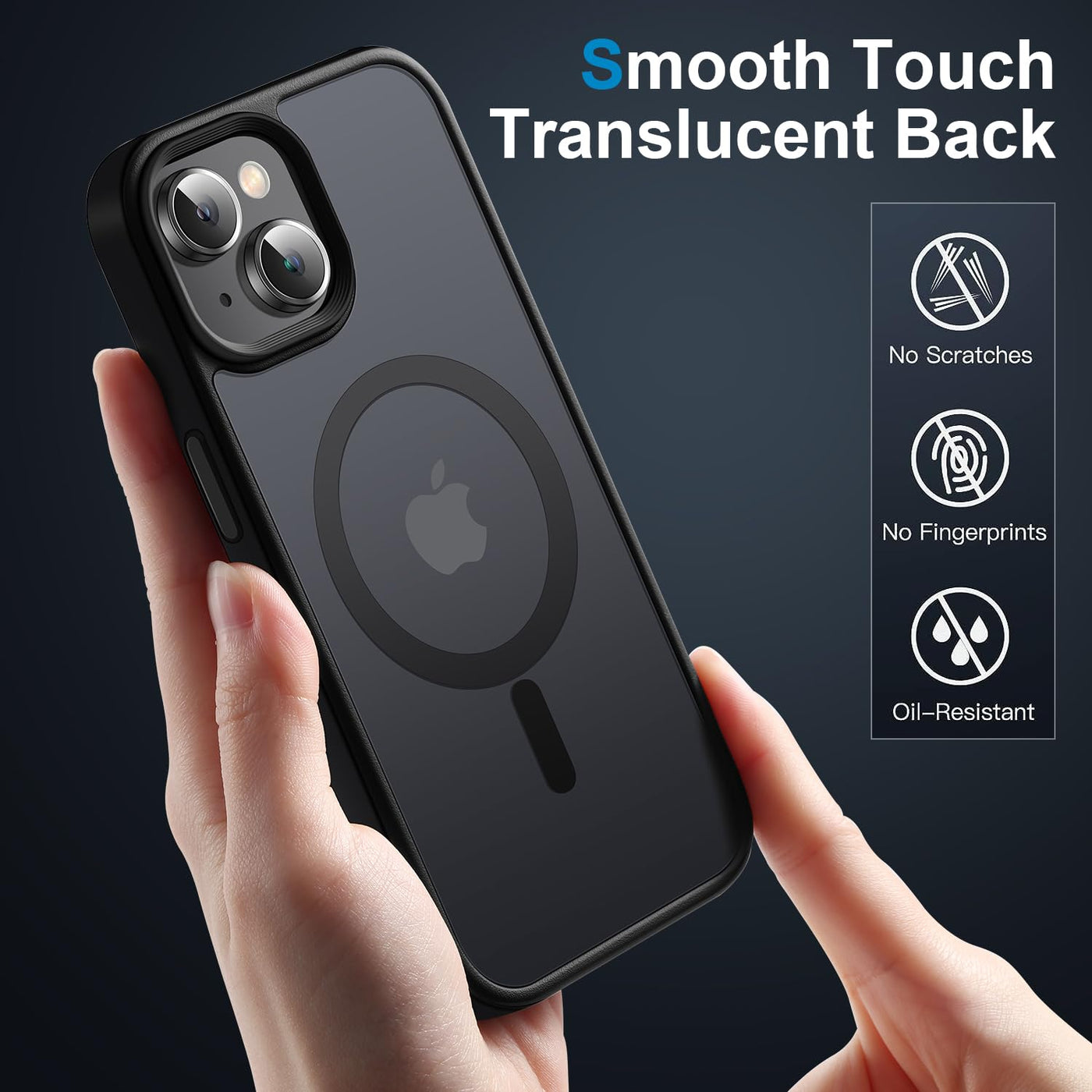 Yzoiko Strong Magnetic Case For Iphone 15 Case [10Ft Grade Drop Tested & Compatible With Magsafe] Translucent Anti Fingerprint A