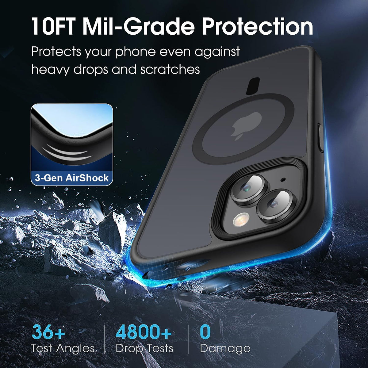 Q: What level of drop protection does this case provide?A: This case offers 10FT military-grade drop protection, effectively dispersing impact from falls and protecting your iPhone 15 from all directions.