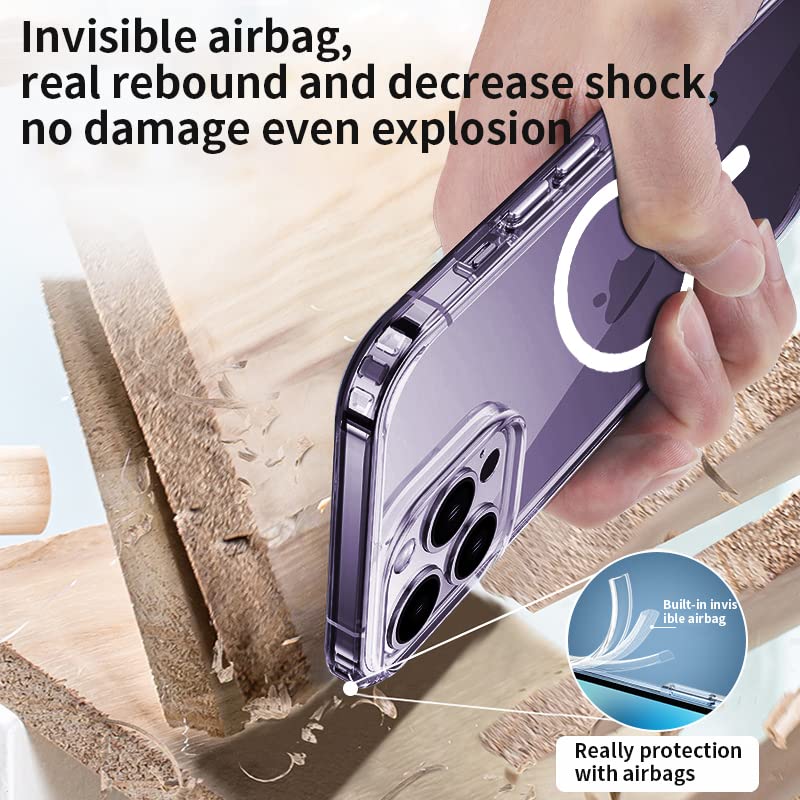 Yzoiko Strong Magnetic Clear For Iphone 14 Pro Max Case [10Ft Military Grade Protection] Compatible With Magsafe Shockproof Slim