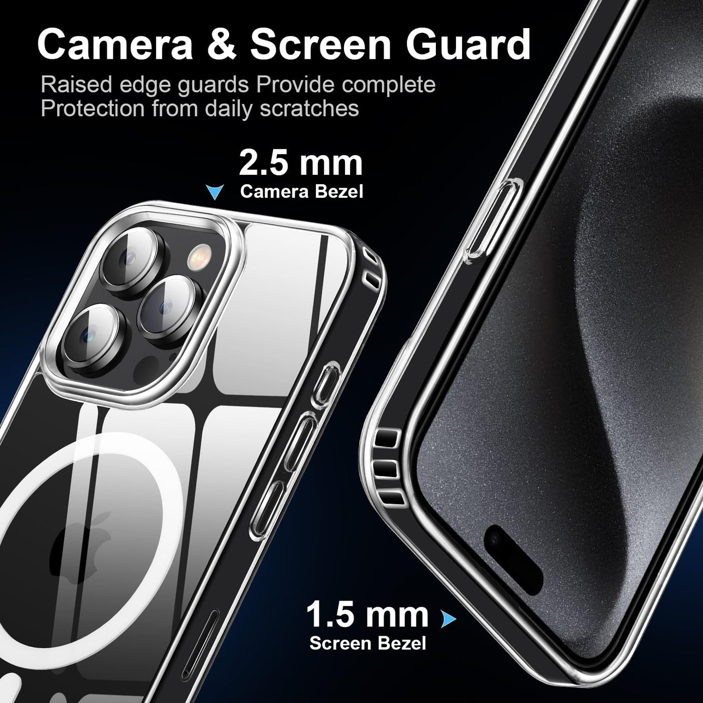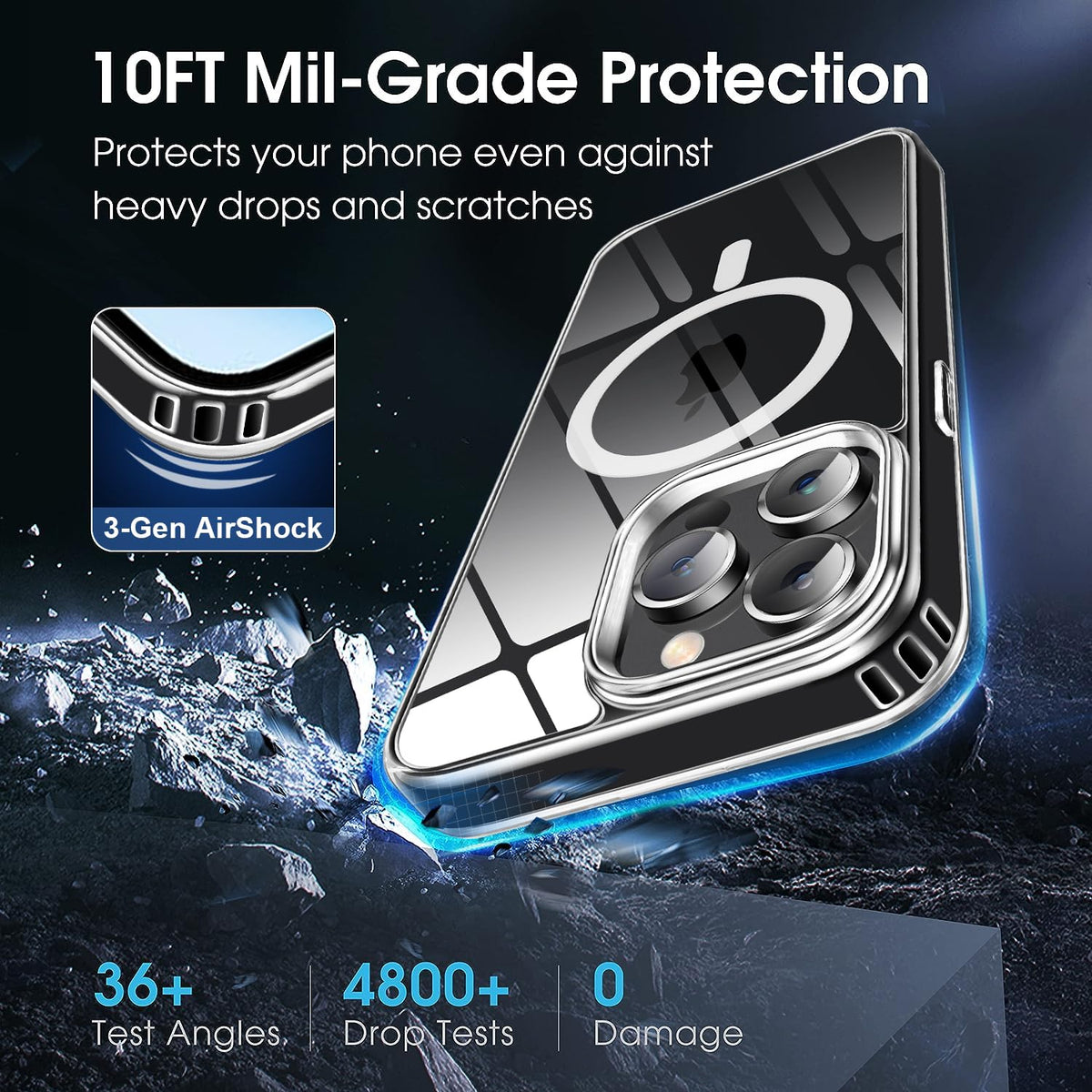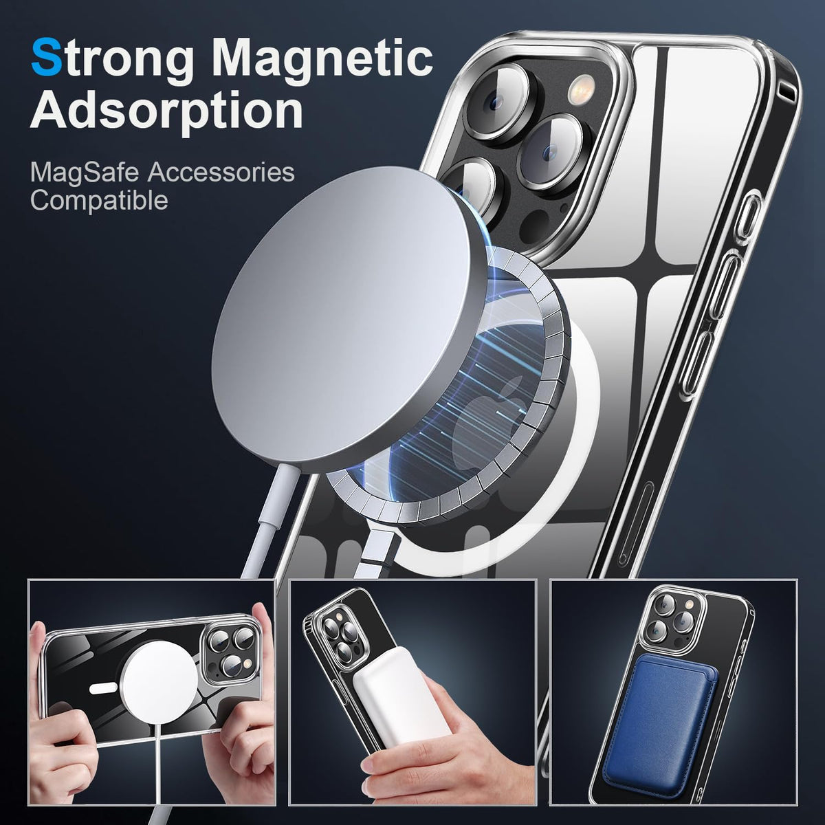 Yzoiko Strong Magnetic Clear For Iphone 15 Pro Max Case [10Ft Military Grade Protection] Compatible With Magsafe Shockproof Slim