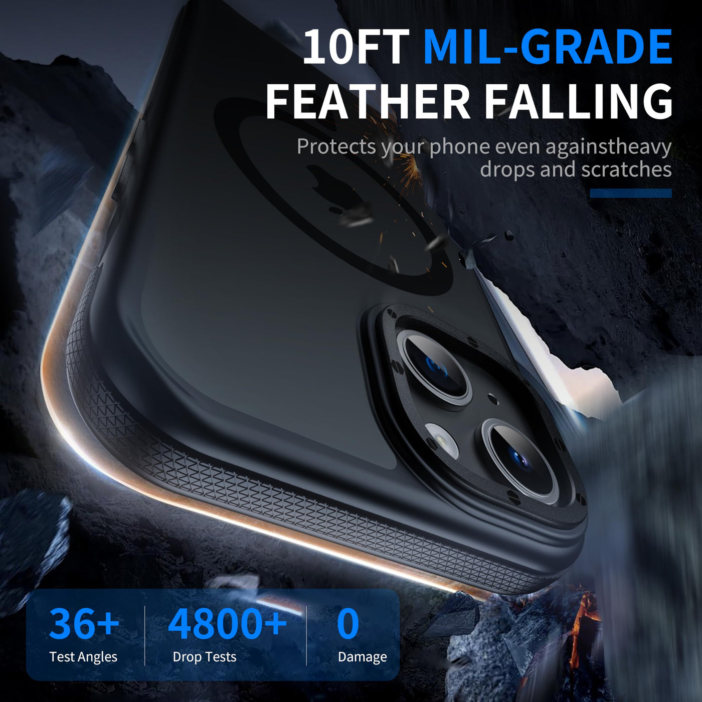 Q: What level of protection does this iPhone 15 case offer?A: This case provides military-grade protection with 10FT drop resistance, shockproof corners, and a durable TPU structure, keeping your device safe from accidental drops and impacts.