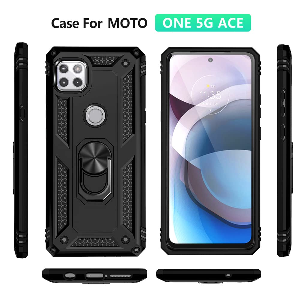 Phone Case For Moto One 5G Ace Dual Layer With Swivel Ring Car Mount Kickstand Hybrid Hard Pc Soft Tpu Protective Case Compatible Phone Models : For Moto One 5G Ace Packaging Including 1 X New Phone Case 1 X Hd Screen Protector 6 Reasons You Will Choose: Great Protection: Dual Layer Support Good Protection To Your Phone Combined With Hard Pc And Soft Tpu To Protect Your Phone From Drops, Scratches And Bumps Metal Ring Kickstand Can Rotate 360A,Easy To Rotate And Sturdy On The Casebuilt In Kickstand Gives You The Convenience To Watch Videos And Movies Hands-Free With Desired Comfort And Stability Built-In Metal Magnetic Sheet For Stable Adsorption,Which Can Be Directly Adsorbed To The Magnetic Car Mount Holder(Not Includes The Magnetic Car Mount Holder) Soft Side Grip: Covered By Soft Rubber To Great Touch Feeling Camera Protection: Raised Lips Are Strategically Placed Behind Every Corner To Ensure Camera And Back Protection Precise Cutouts Ensure Easy Access To All Features Feedback: Any Question For Your Order We Will Reply To You Within 24 Hours And Give You A Satisfactory Answeryour Satisfaction Is My Effortthank You Our Products Have Been Well Tested, Examined And Packaged Before Sending Offwe Guarantee The Quality Of Itemif For Any Reason This Product Fails To Perform As You Think It Should, Or If You Simply Dont Like It, Just Return It To Us For An Exchange Or A Full Refund