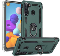 Yzok For Galaxy A21 Case, Samsung A21 Case, With Hd Screen Protector,[Military Grade] Ring Car Mount Kickstand Hybrid Hard Pc So