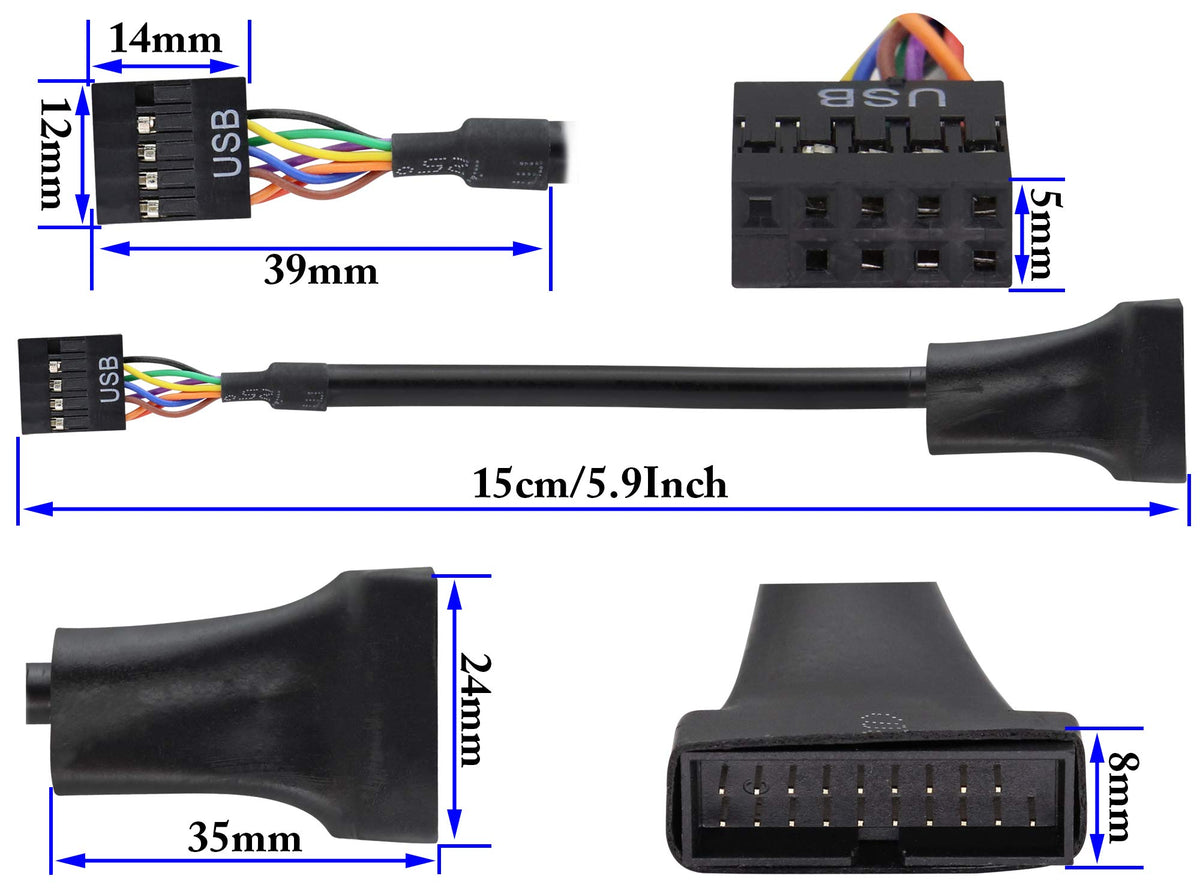 Zdycgtime Usb 3.0 19Pin Male To Usb 2.0 9Pin Female Convertor Computer Cable Connector,Motherboard Adapter Cable,Motherboard 9Pin Female To 20Pin Male Pure Copper.(15Cm/4 Pack)