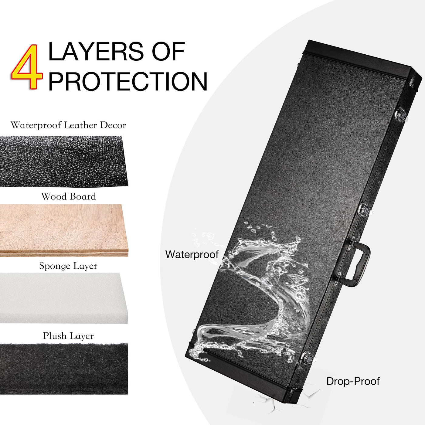 Zehuoge Electric Guitar Hard Case Electric Guitar Wooden Hard Shell Lockable Black (Black For Electric Rectangle Guitar)