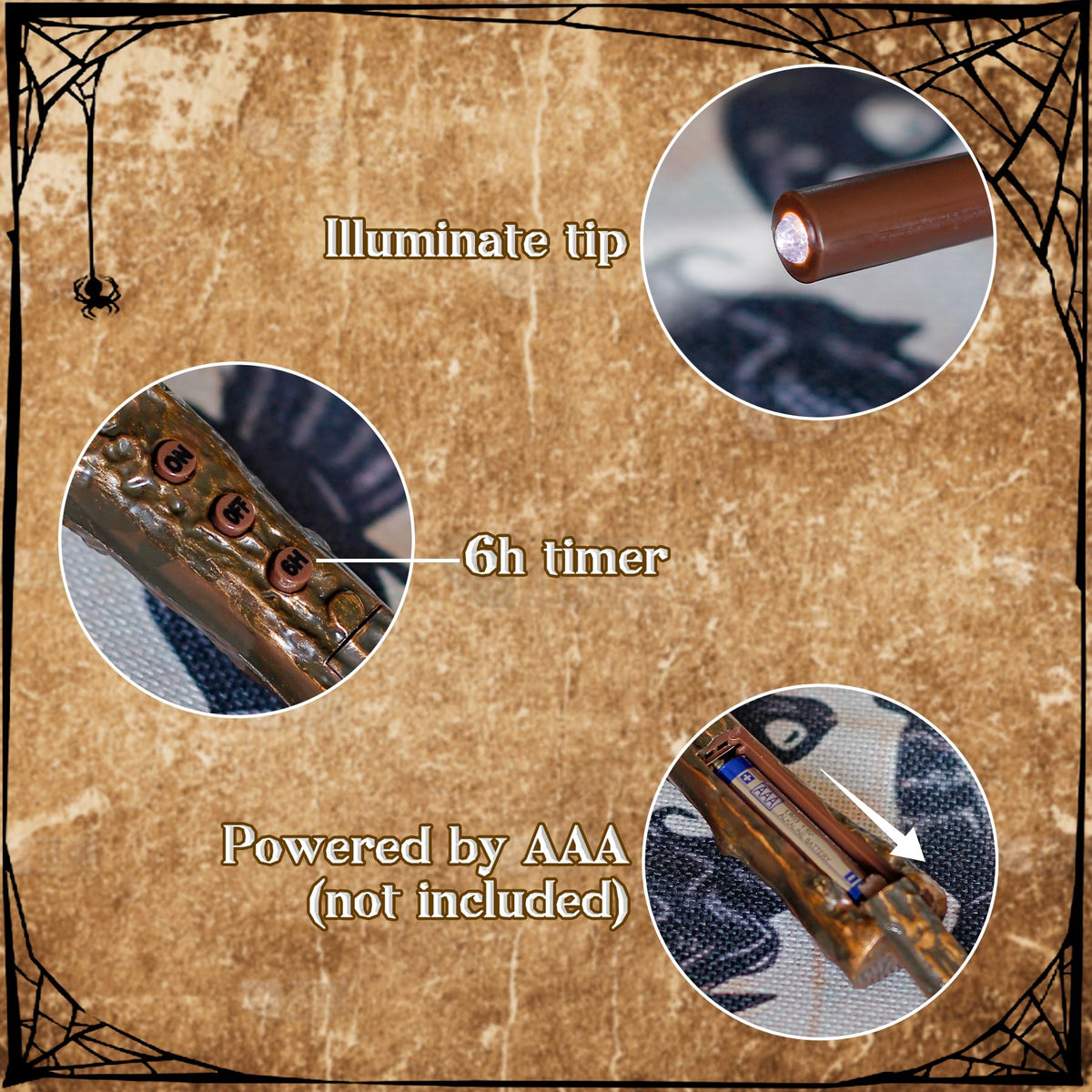 Q: What features does the remote control for the floating candles have?A: The remote control features three buttons: 'ON', 'OFF', and a '6H' timer. This allows you to easily operate the candles from a distance and set a timer for automatic shut-off after 6 hours.