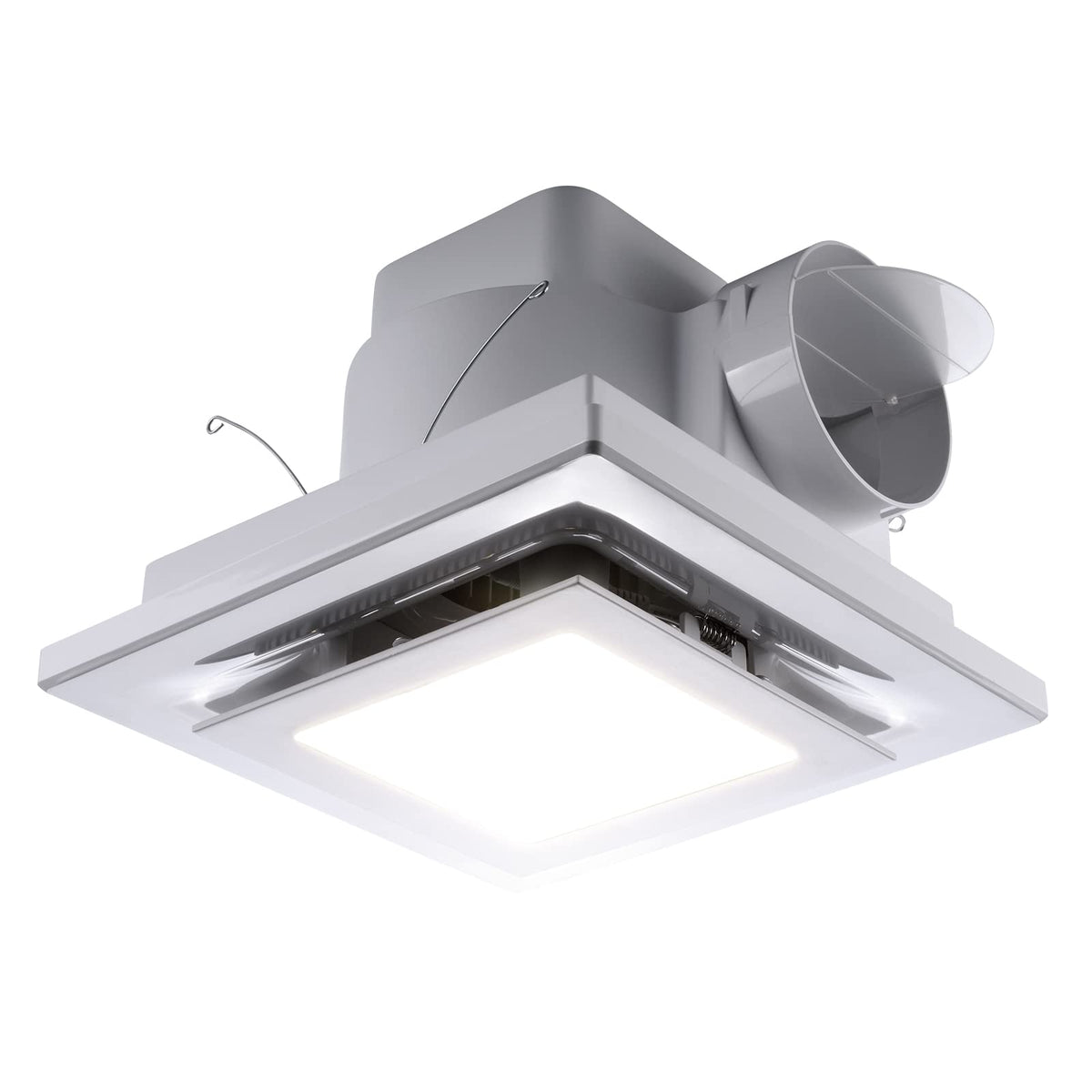 Q: What are the installation requirements for this exhaust fan?A: The exhaust fan requires a mounting hole size of 8.07 x 8.07 inches and has a duct diameter of Ø4.0 inches. It can be directly fixed to the dropping ceiling using screws, so ensure you confirm the size before purchasing.