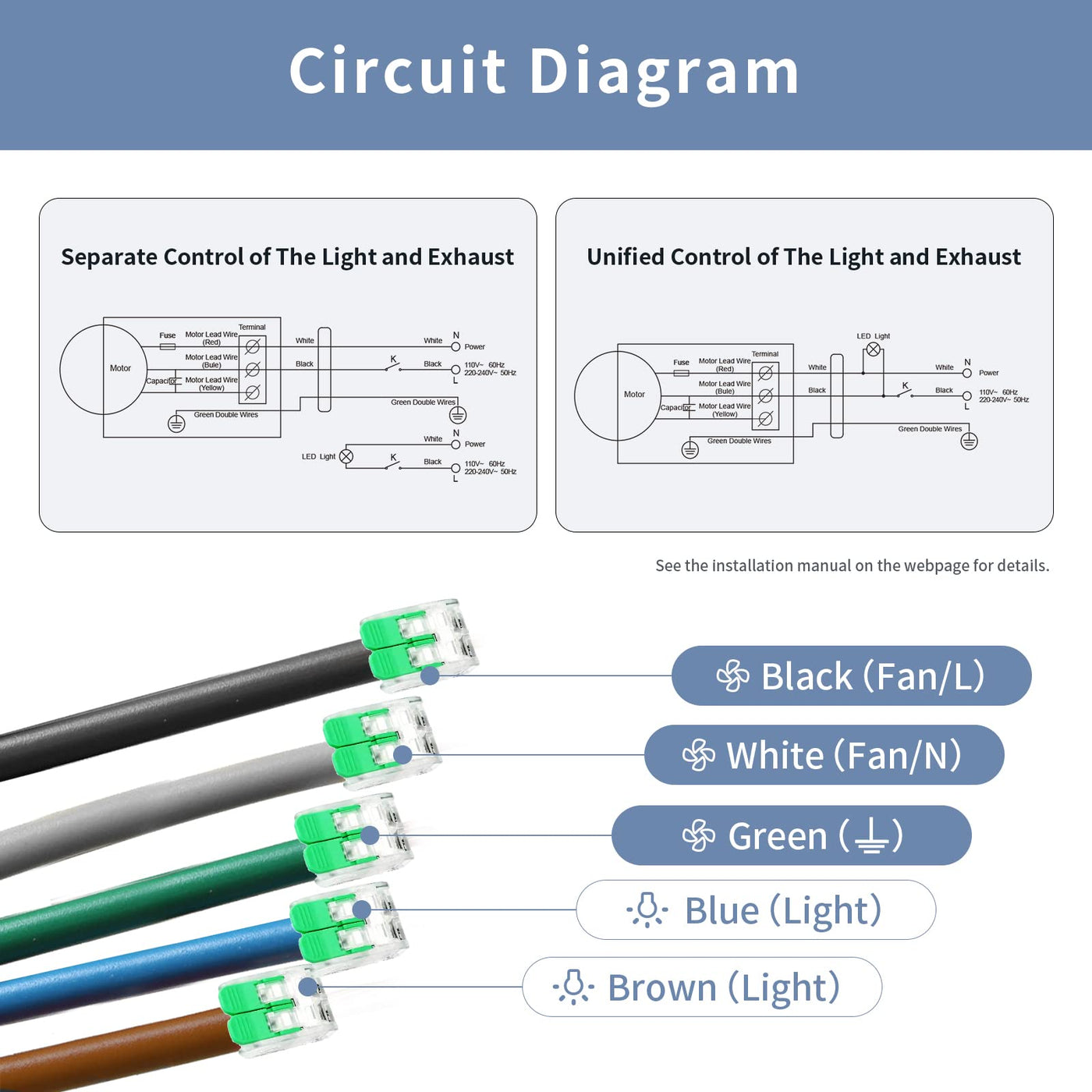 Q: Can the LED light be used independently from the fan?A: Yes, the Zeyzer Bathroom Exhaust Fan is designed with separate wiring for the fan and LED light, allowing you to control each function individually based on your needs.