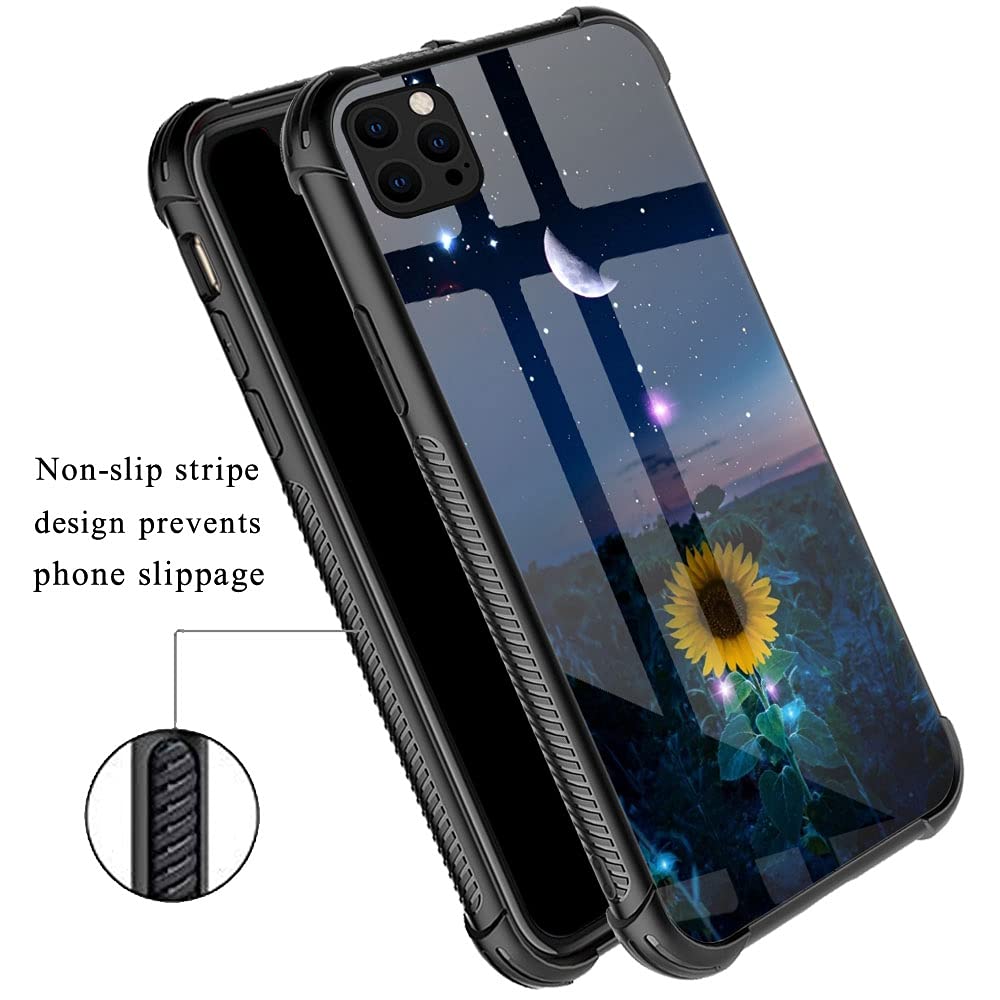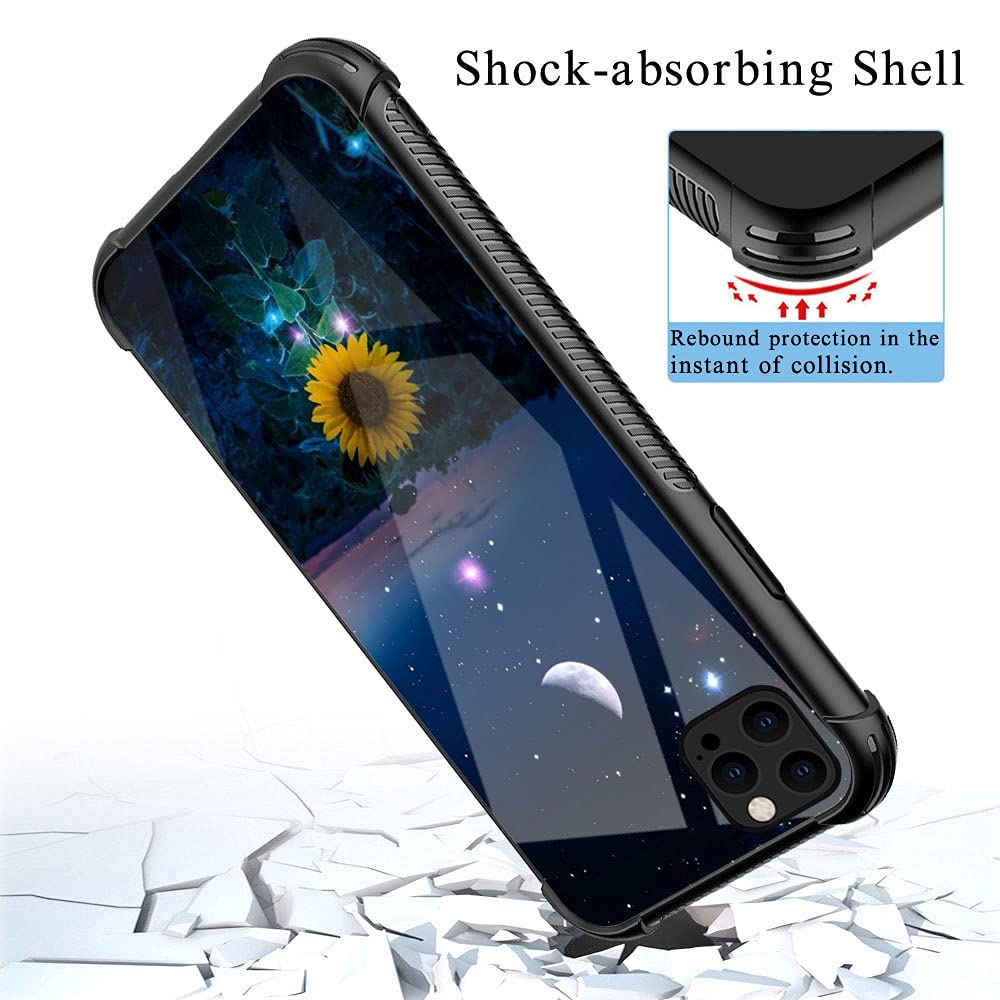 Zhegailian Case Compatible With Iphone 13,Sunflower Moon Starry Sky 13 Cases For Girls,Reinforced Corners Soft Tpu Bumper Shockp