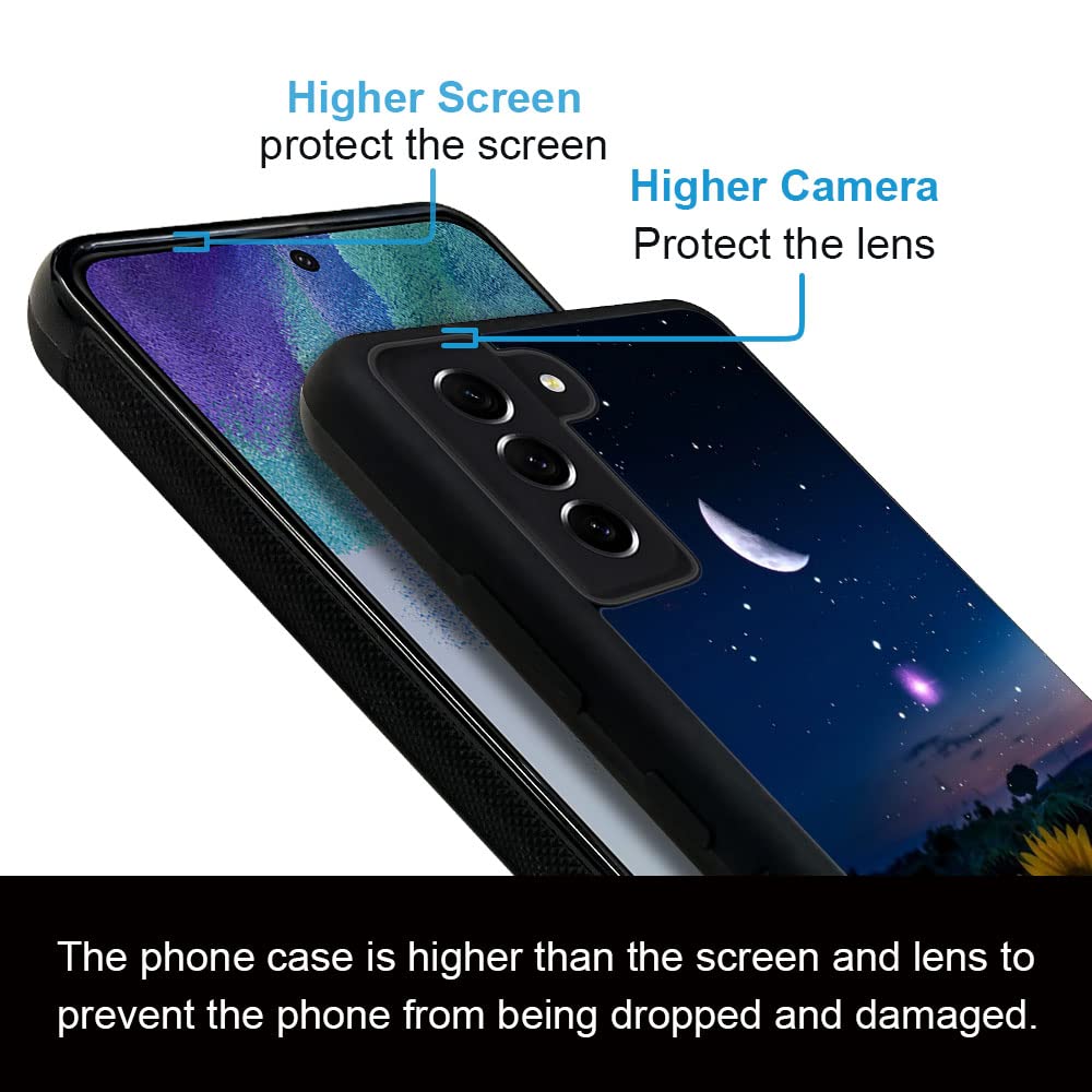 Zhegailian Compatible With Samsung Galaxy S23 Case,Sunflower Moon Starry Sky Samsung Galaxy S23 Cases For Girls,Non Slip Soft Tp